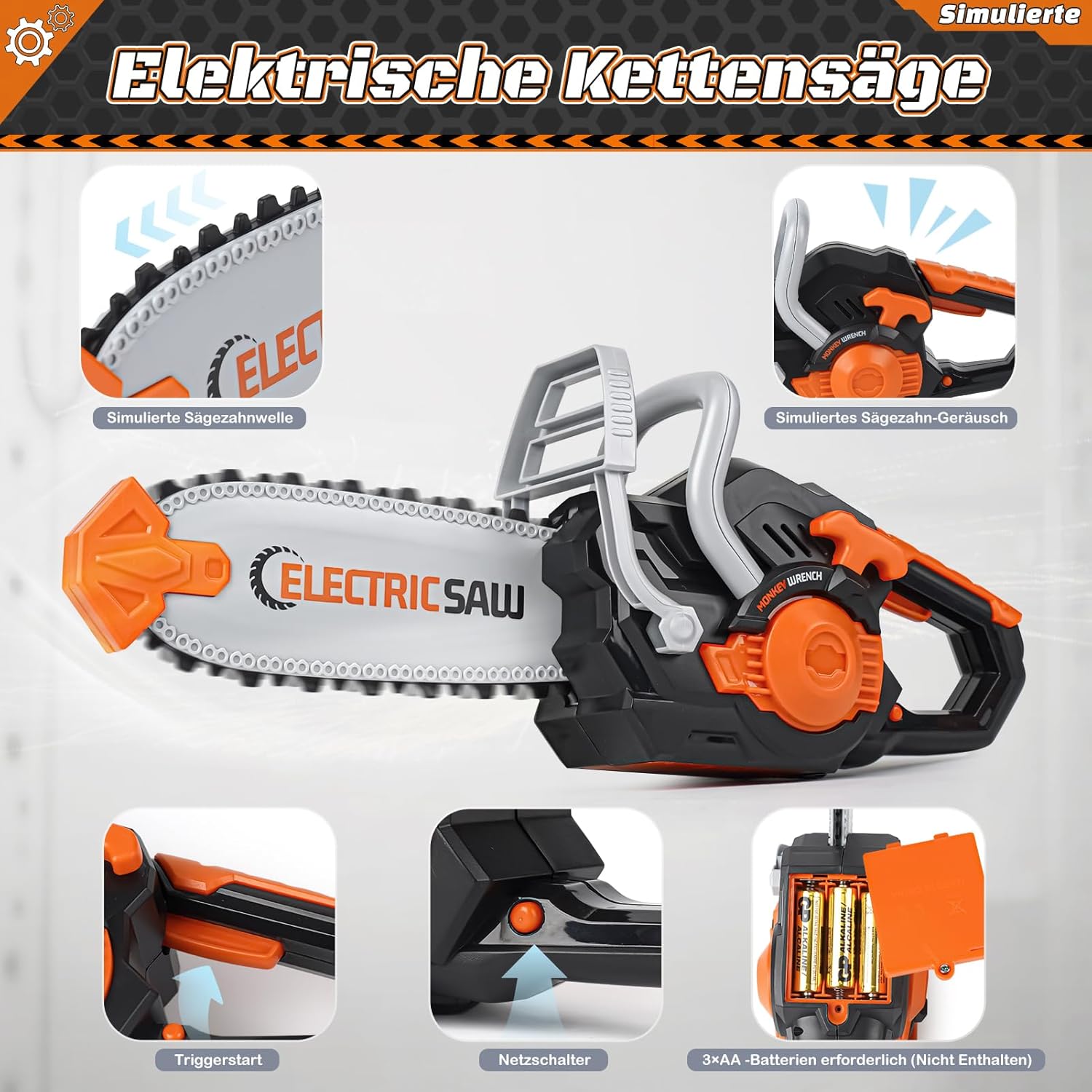 - 【Realistisches Design mit Sound-Effekten für ein fesselndes Spielerlebnis】Dieses Werkzeugset benötigt 9 AA-Batterien (nicht im Lieferumfang enthalten). Nach dem Einbau der Batterien imitieren die Werkzeuge nicht nur echte Bewegungen, sondern