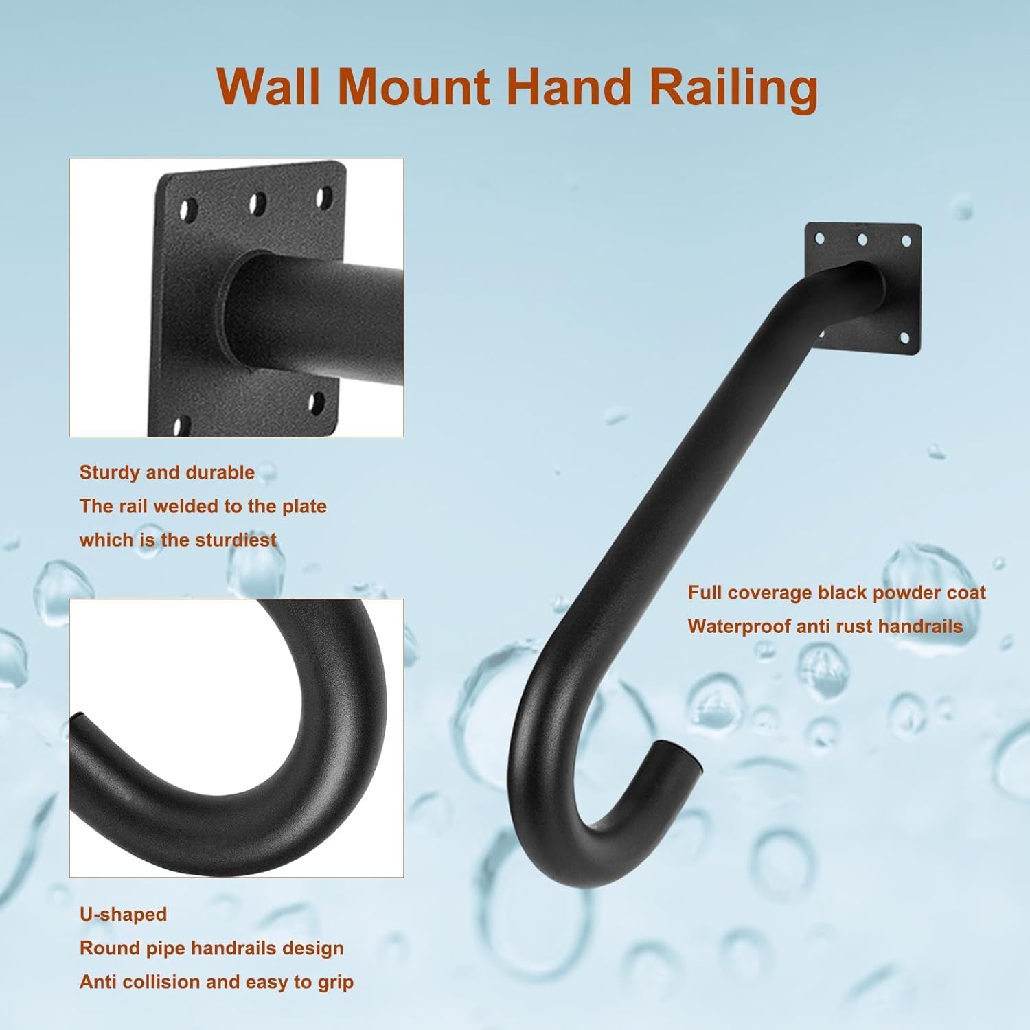 - 【DESIGNGRÖSSE】 Armlehnen-Wandhalterung ist perfekt für 1-3 Stufen, Armlehnenlänge: 39 cm/15 Zoll. Die beiden Seiten des Treppenhandlaufs sind bogenförmig, was angenehm zu halten ist, eine schöne Form hat und ein starkes Sicherheitsgefühl