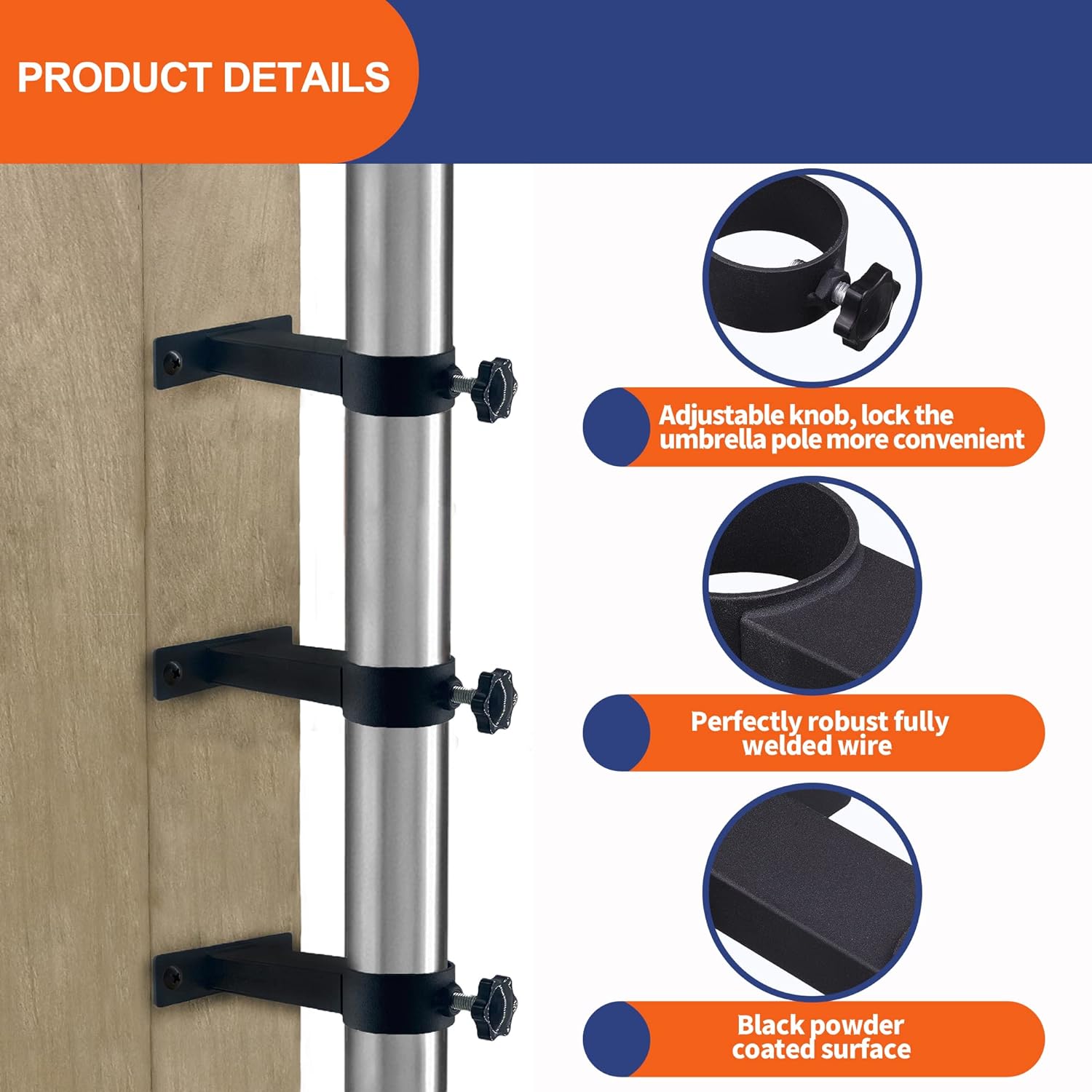 • 【Hochwertige Materialien】Die Schirmhalterklemme ist aus robustem Stahl, schwarze Beschichtungsoberfläche, starke Oxidationsbeständigkeit, rostet nicht leicht.