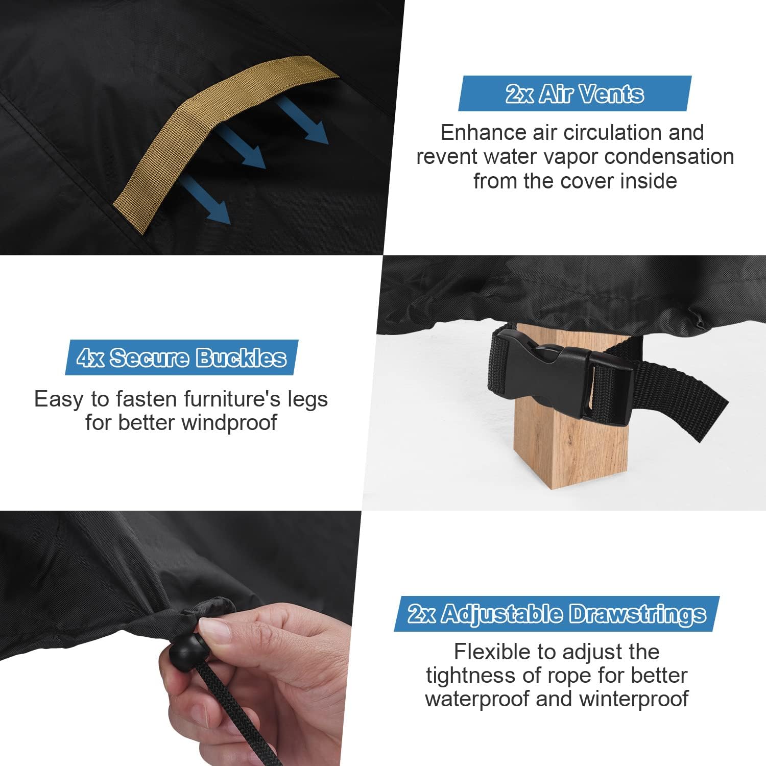 - [Besser Wetterfest und Reissfest] Abdeckung für terrassenmöbel ist mit aussen rohrleitungen und zweifaden-nähten,um eine stärkere und reissfeste Passform zu gewährleisten.Um das Eindringen von Wasser durch die Nähte zu verhindern, wurde ein
