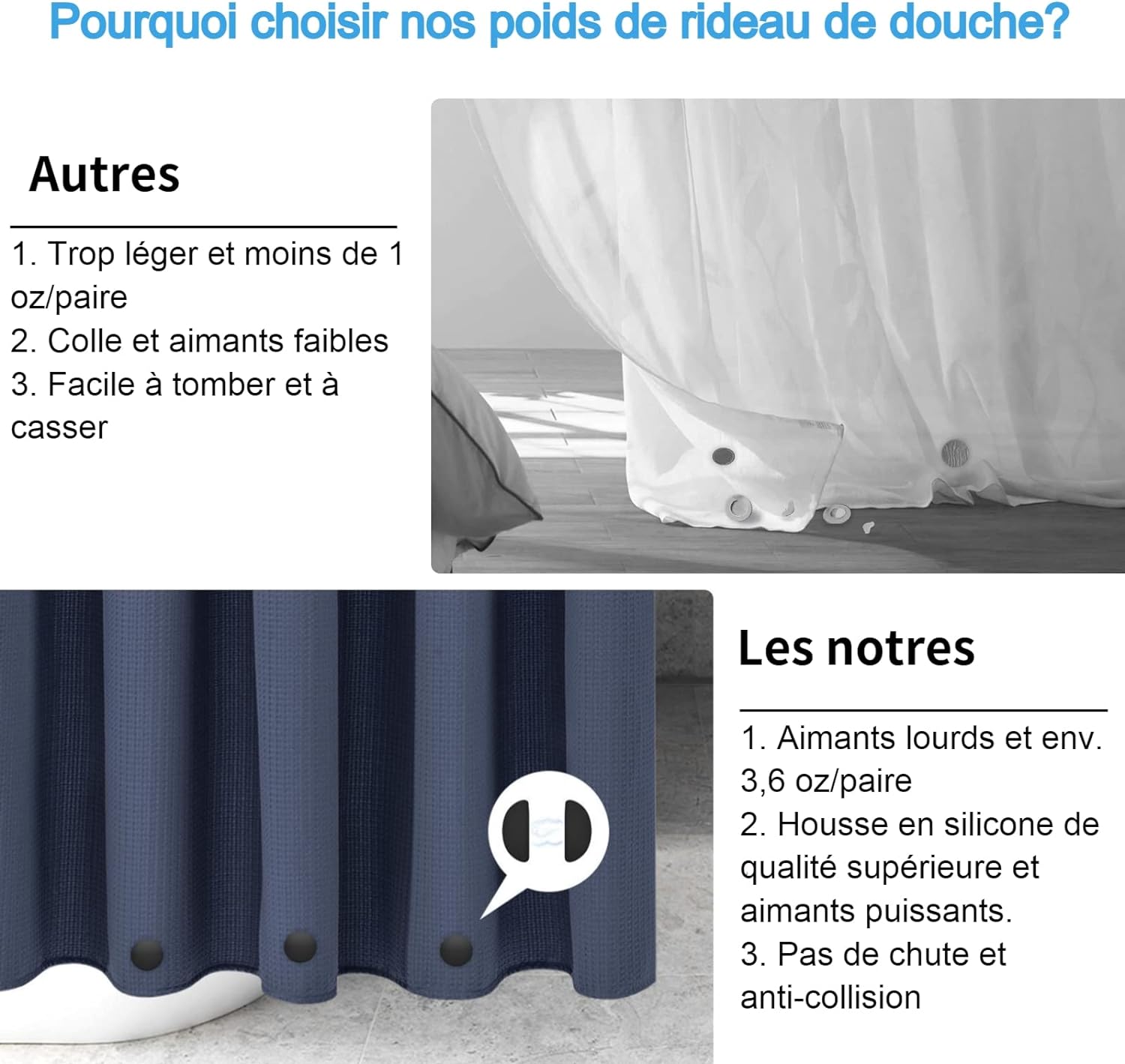 - Breite Anwendung: Diese Magnete können nicht nur als Beschwerer für Duschvorhänge verwendet werden, sondern auch als Beschwerer für Fenstervorhänge, um zu verhindern, dass Fenstervorhänge wegblasen. als Tischdeckenbeschwerer, um die Tischdecke an