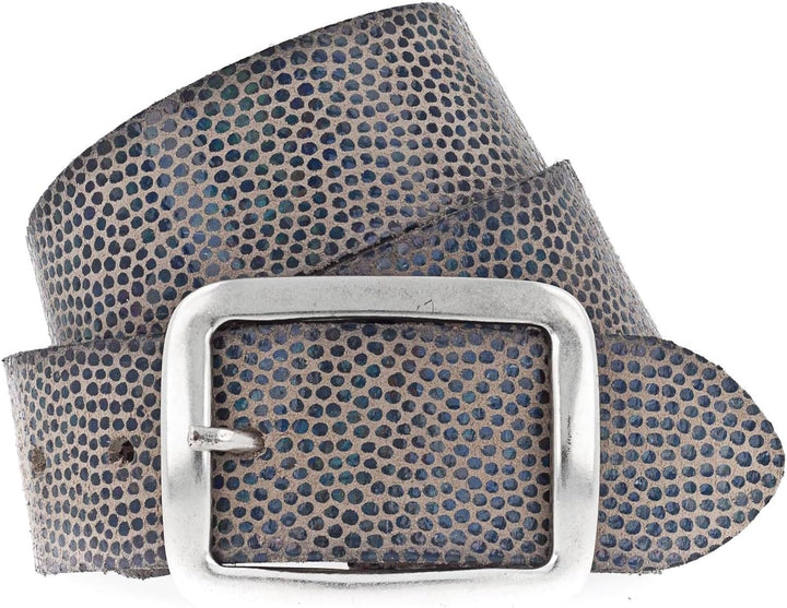 PRODUKTBESCHREIBUNGEN Vanzetti Gürtel im modischen Design Daten Gürtel: o Grösse: Weite ca. 73 cm - ca. 85 cm (W80) o Masse: Breite ca. 4 cm, Stärke 0,3 cm o Gewicht: ca. 125 g o Farbe: Blue Metallic (Braun / Blau) o Material: 100% Leder o Lieferumfang: Vanzetti Gürtel mit Etikett Ausstattung Gürtel: o Gürtel wird mit Dornschliesse geschlossen o 6 gestochene Löcher o Das Vanzetti Logo ist gut sichtbar eingearbeitet Vanzetti Glitter Radiance 40mm Belt W80 - Der schicke Gürtel Dieser sportlich schicke und zugleich modische Vanzetti Gürtel ist nicht nur ein praktischer Alltagsheld, sondern auch ein stylisches und zugleich schickes Accessoire, um Ihren Outfits das gewisse Etwas zu verleihen. Durch sein breites Auftreten, ist der Gürtel ein schicker Blickfang, den Sie nicht mehr missen möchten. Der Vanzetti Glitter Radiance 40mm Belt 80 begeistert voller Modebewusstsein und Stil und wartet nur darauf von Ihnen ausgeführt zu werden. Entdecken auch Sie Ihren neuen Liebling!