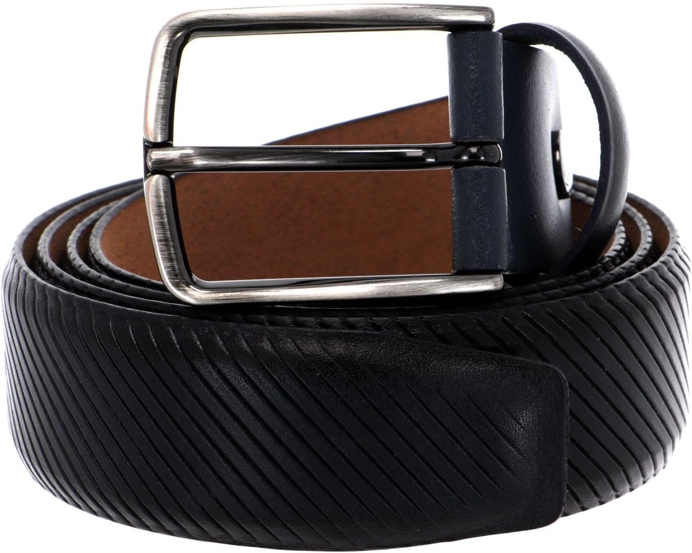 PRODUKTBESCHREIBUNGEN Vanzetti Gürtel mit Streifen Optik Daten Gürtel: o Grösse kürzbar: Weite ca. 100 cm - ca. 112,5 cm (W105) o Masse: Breite ca. 3,5 cm, Stärke 0,3 cm o Gewicht: ca. 145 g o Farbe: Marine (Blau) o Material: 100% Leder o Lieferumfang: Vanzetti Gürtel mit Etikett Ausstattung Gürtel: o Gürtel wird mit Dornschliesse geschlossen o 6 gestochene Löcher o Das Vanzetti Logo ist gut sichtbar eingearbeitet Vanzetti 35mm Leather Belt W105 - Der modische Gürtel für den Alltag Dieser schicke und modische Vanzetti Gürtel ist nicht nur ein praktischer Alltagshelfer, sondern auch ein vielseitig kombinierbares Accessoire, um Ihren Outfits das gewisse Etwas zu verleihen. Mit seiner Streifen Optik überzeugt der Gürtel bereits auf den ersten Blick und beeindruckt jeden. Mit wenigen Handgriffen können Sie die Gürtelweite an Ihren Körper anpassen. Ansonsten ist der schicke Vanzetti 35mm Leather Belt W105 kürzbar. Entdecken auch Sie Ihren neuen Liebling! Mehr