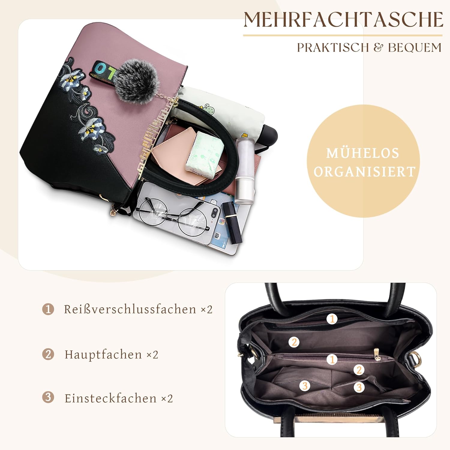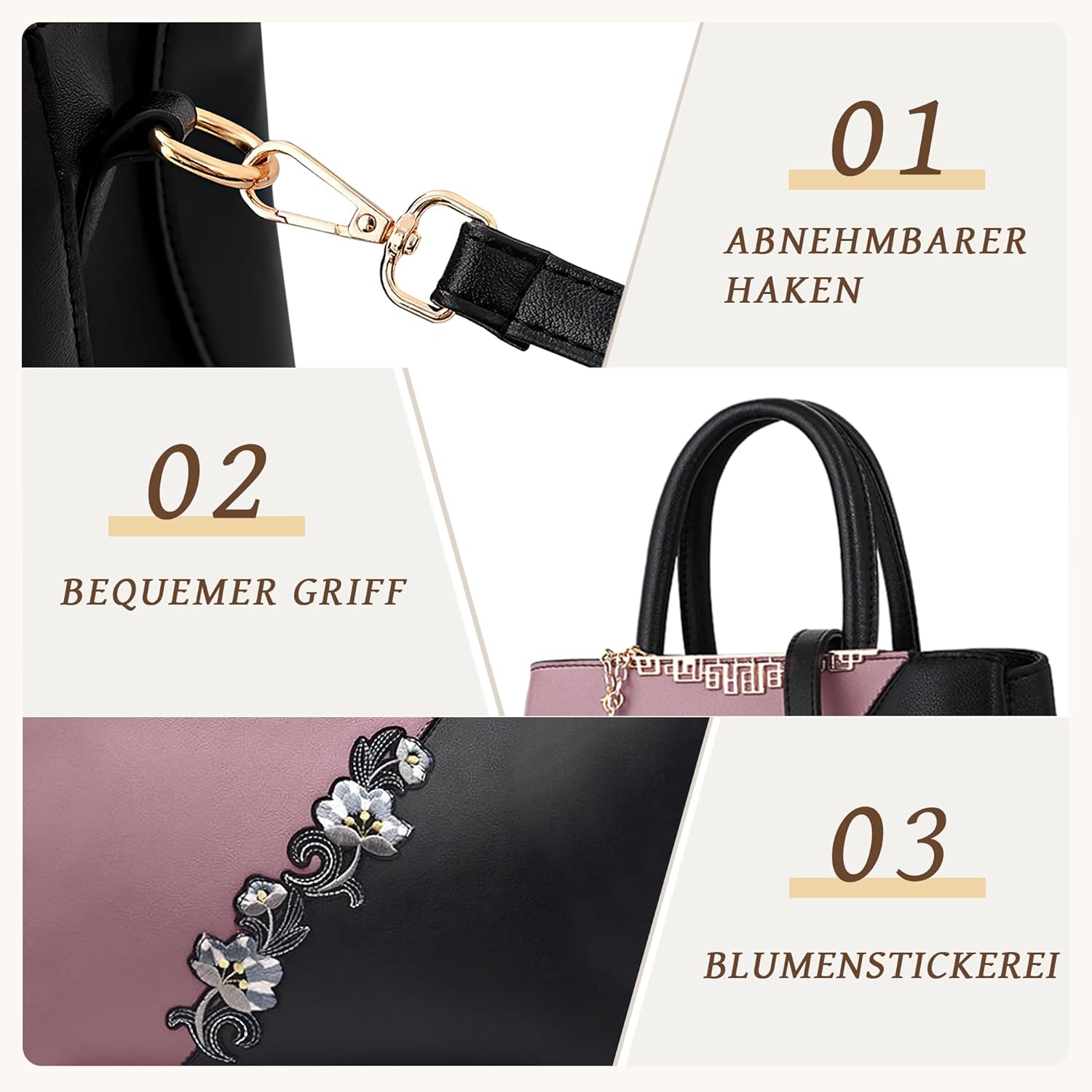 - 3 Verwendungsmöglichkeiten: Mit abnehmbarem und langem Schultergurt können Sie ihn auf 3 Arten tragen, als Handtasche, Umhängetasche oder Umhängetasche. Diese stilvolle Handtasche eignet sich für Frauen zu allen Gelegenheiten, einschliesslich