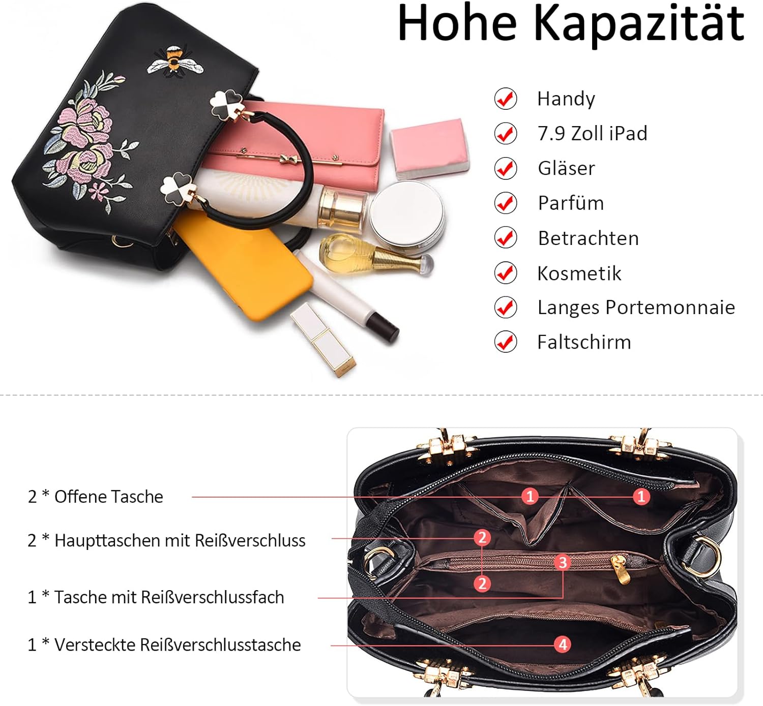 - Elegantes und klassisches Design: VARLIVOO Handtaschen zeigen perfekt Ihre Eleganz. Diese Damen-Umhängetasche ist mit stilvoller Stickerei-Handwerkskunst mit einer perfekten Kombination aus Bienen- und Blumenmustern für eine einzigartige Ästhetik