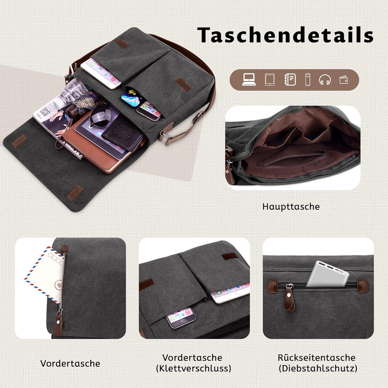VARLIVOO Umhängetasche für Herren Schultertaschen 14" Zoll Laptoptaschen Messenger Bags Kuriertasche