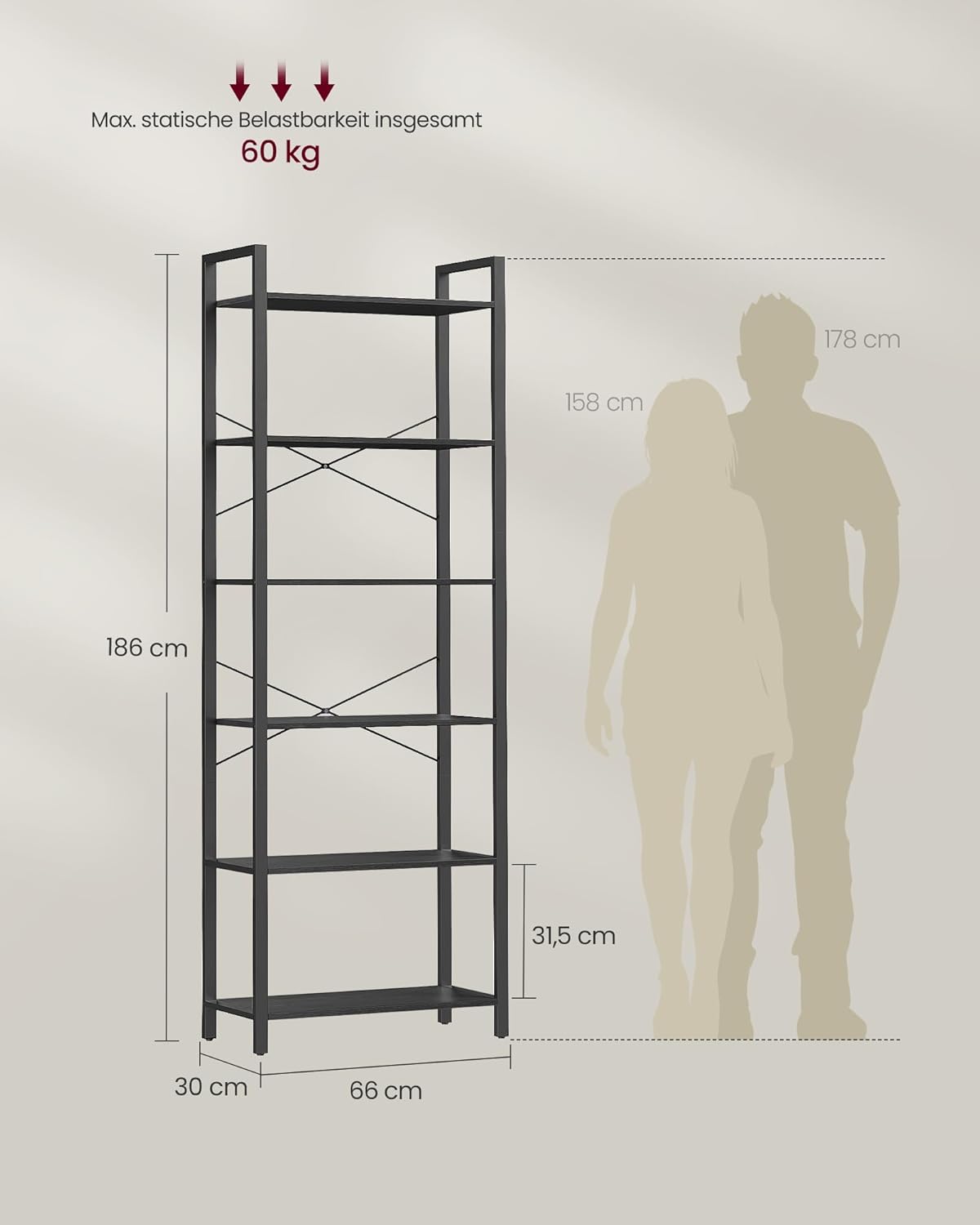 • [Mit viel Stauraum & für unterschiedliche Räume] Mit sechs offenen Ablagen bietet dieses 30 x 66 x 186 cm Regal viel Stauraum, um Ihre Lieblingsbücher, Dekos und Pflanzen im Wohnzimmer, Schlafzimmer oder Arbeitszimmer zu präsentieren