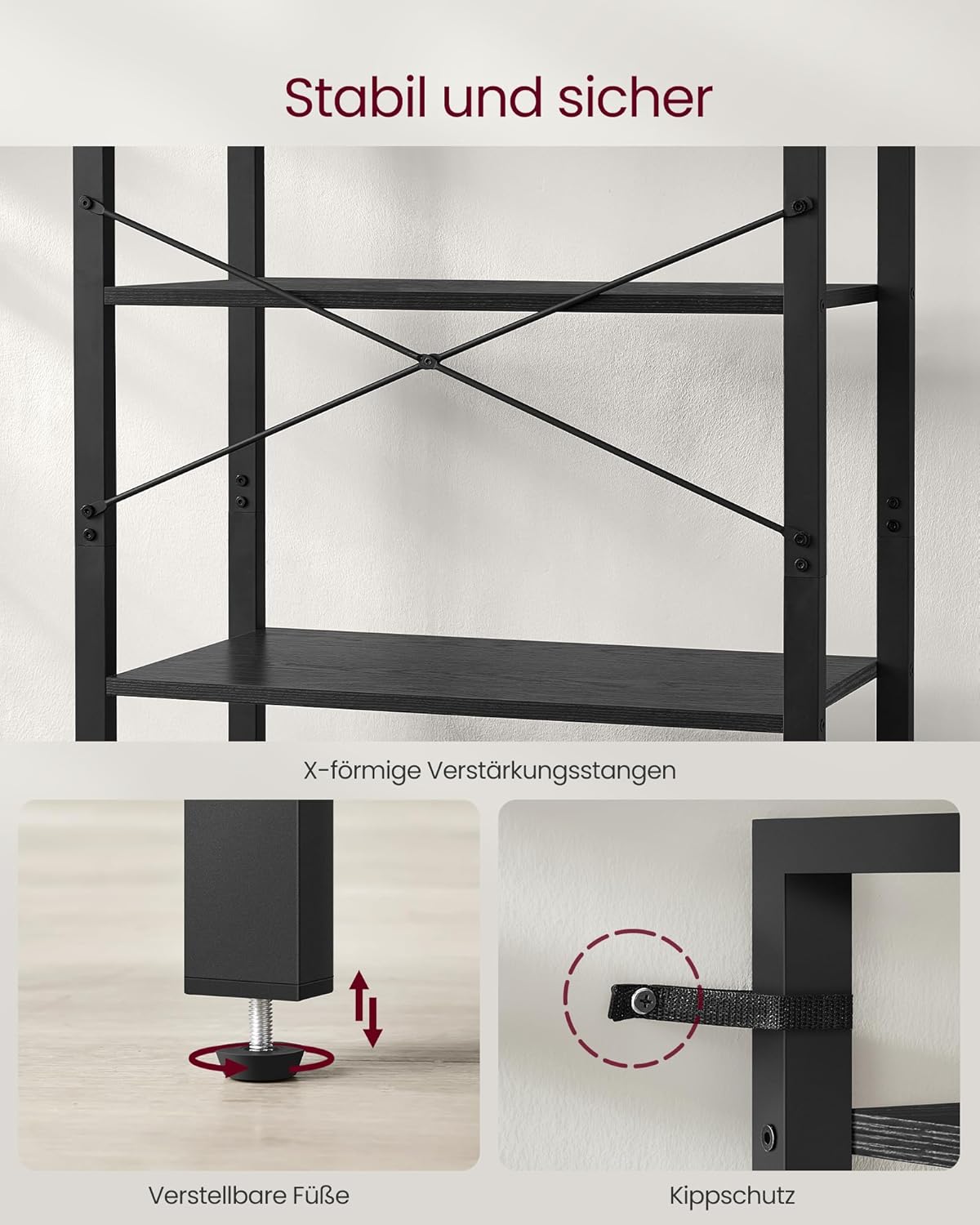 • [Stabil & sicher] X-förmige Stangen, um die Konstruktion zu verstärken; verstellbare Füsse, um das Regal auf leicht unebenen Böden im Gleichgewicht zu halten; Kippschutz, um es an der Wand zu befestigen und mehr Stabilität und Sicherheit zu bieten
