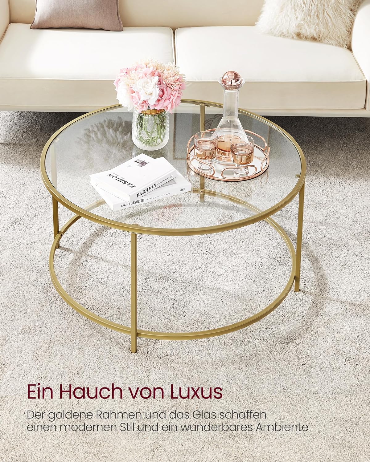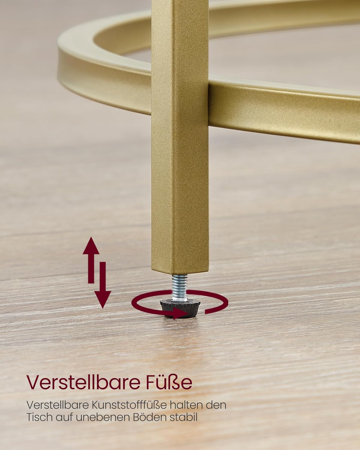 - Beweisen Sie Stil: Goldenes Metallgestell, transparente Glasplatte – Zusammen bilden die beide Elemente eine faszinierende Kombination, die sowohl schick wirkt, als auch Stil und Klasse beweist