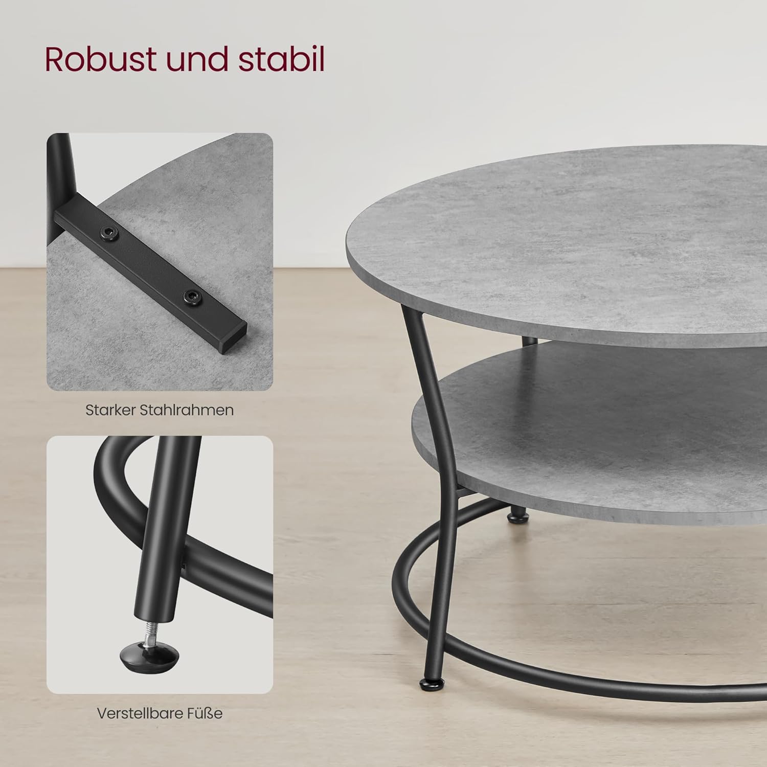 - 【VIEL STAURAUM】Mit seiner breiten Tischplatte und der zusätzlichen Ablage darunter bietet dieser runde Couchtisch viel Stauraum, um die wichtigen Dinge im Wohnzimmer zu organisieren und ein aufgeräumtes Zuhause zu schaffen