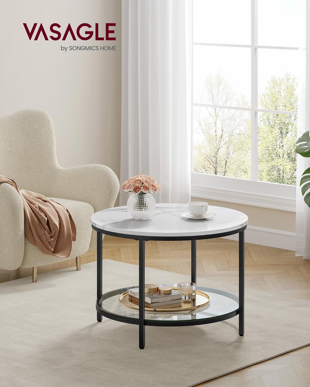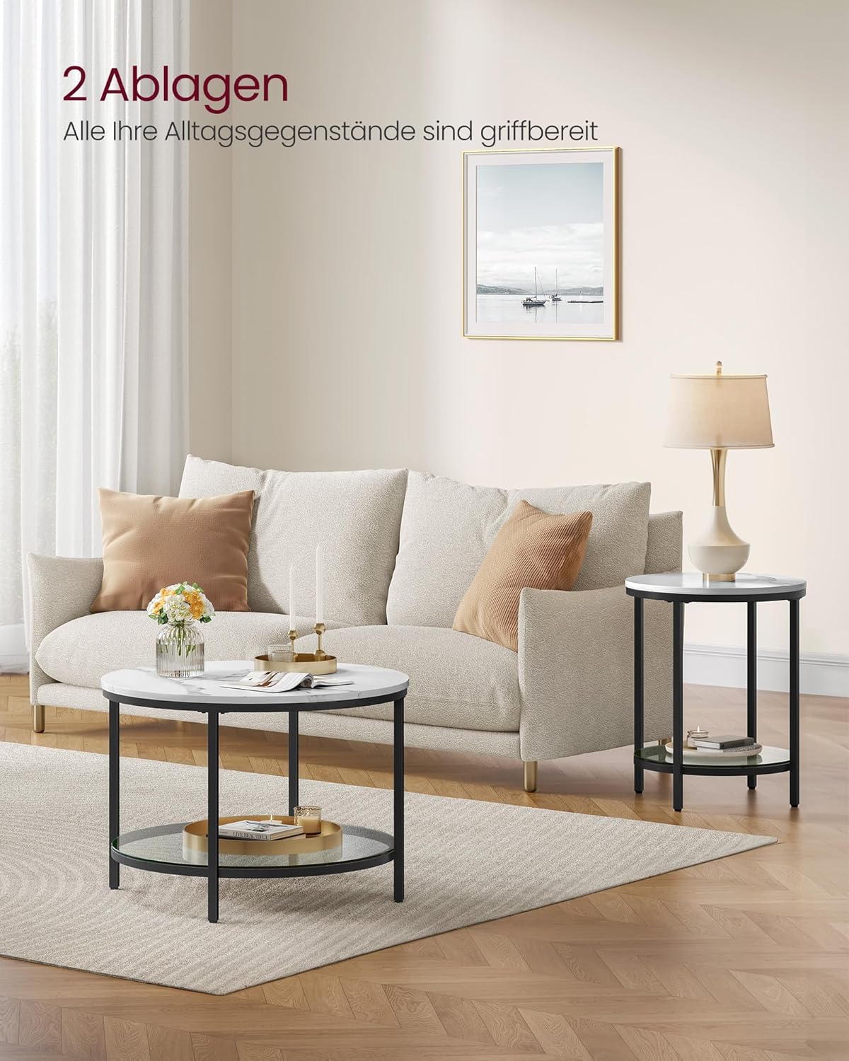 - [Was Sie bekommen] Einen modernen Couchtisch, der Sie über viele Jahre hinweg begleiten wird, mit einer Tischplatte in Marmoroptik und einer Ablage aus Hartglas unten, sowie einer klaren Anleitung für eine einfache Montage