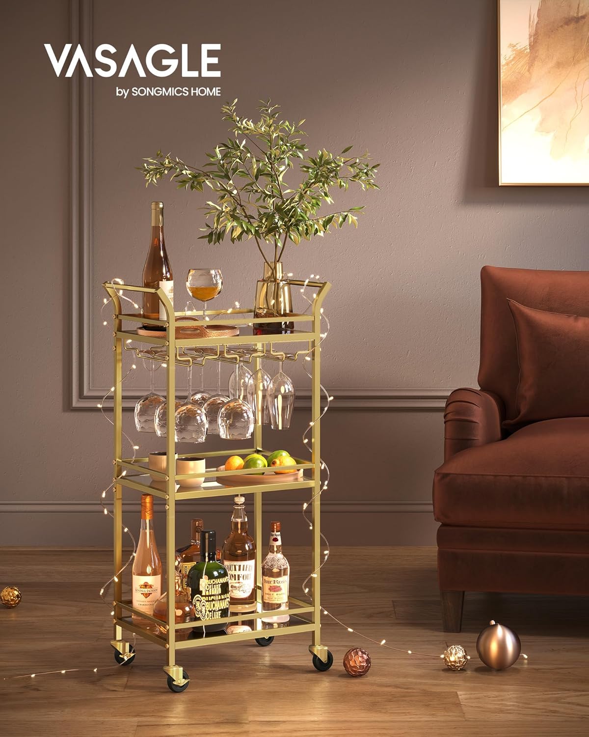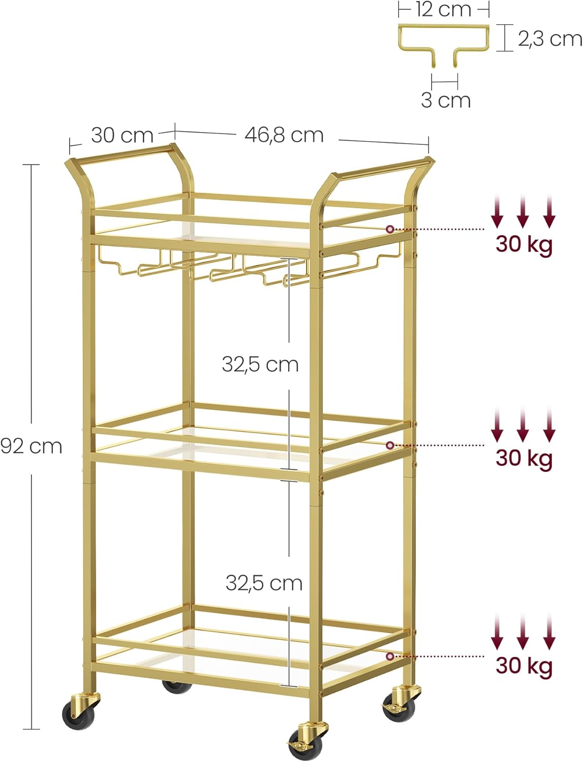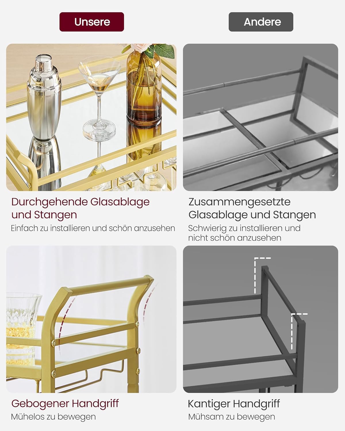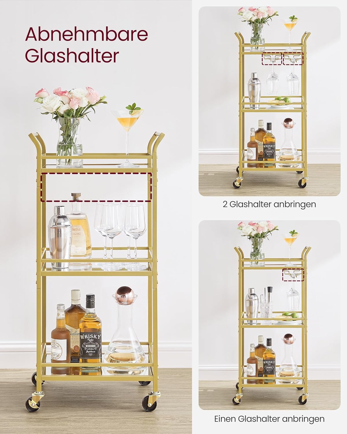 - [3 abnehmbare Glashalter] Dieser Wagen wird mit 3 Glashaltern geliefert, die Ihre Gläser stets griffbereit halten. Ausserdem sind alle Glashalter abnehmbar, d. h. Sie können sie nach Bedarf anbringen
