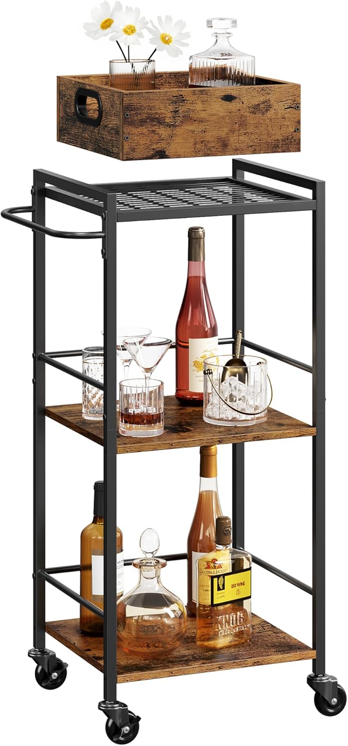 - [Praktischer Servierwagen] Wenn Sie Ihre Freunde zu einem Abendessen eingeladen haben, Ihr Tisch jedoch zu klein ist, um darauf all Ihre Köstlichkeiten abzustellen, hilft Ihnen dieser Küchenwagen in stilvollem Vintagebraun und elegantem Schwarz