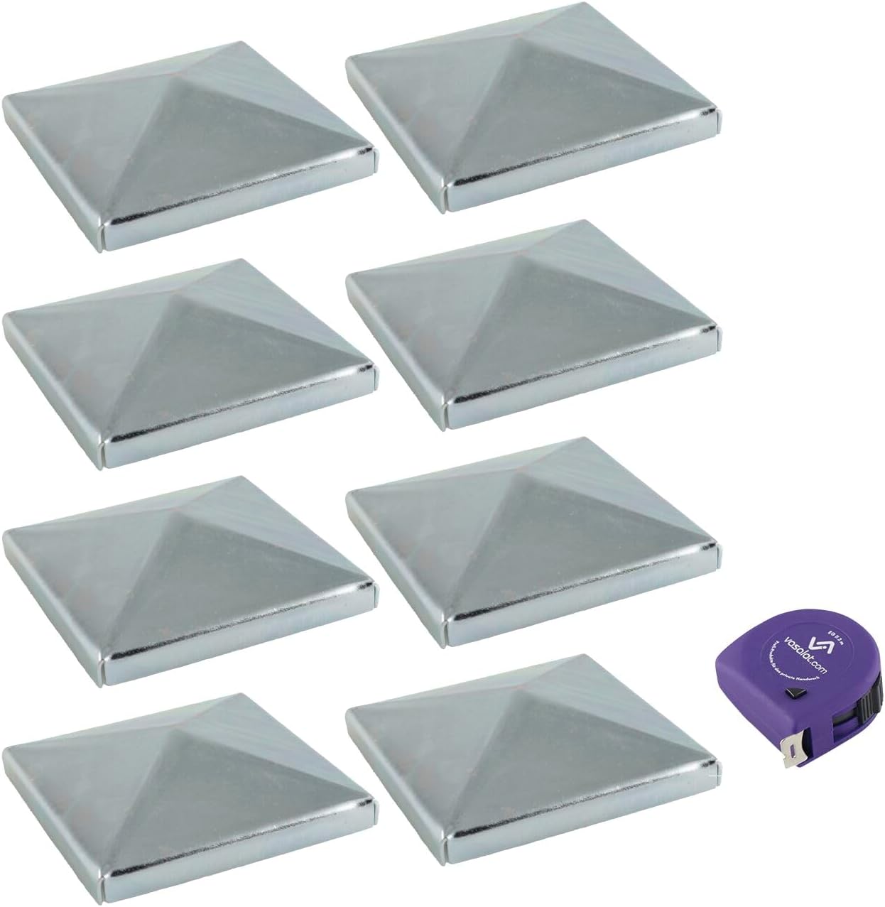 - VASALAT PROFI SET: 8x Abdeckkappen Pfosten 10x10cm Stahl verzinkt + vasalat Rollmeter 3m