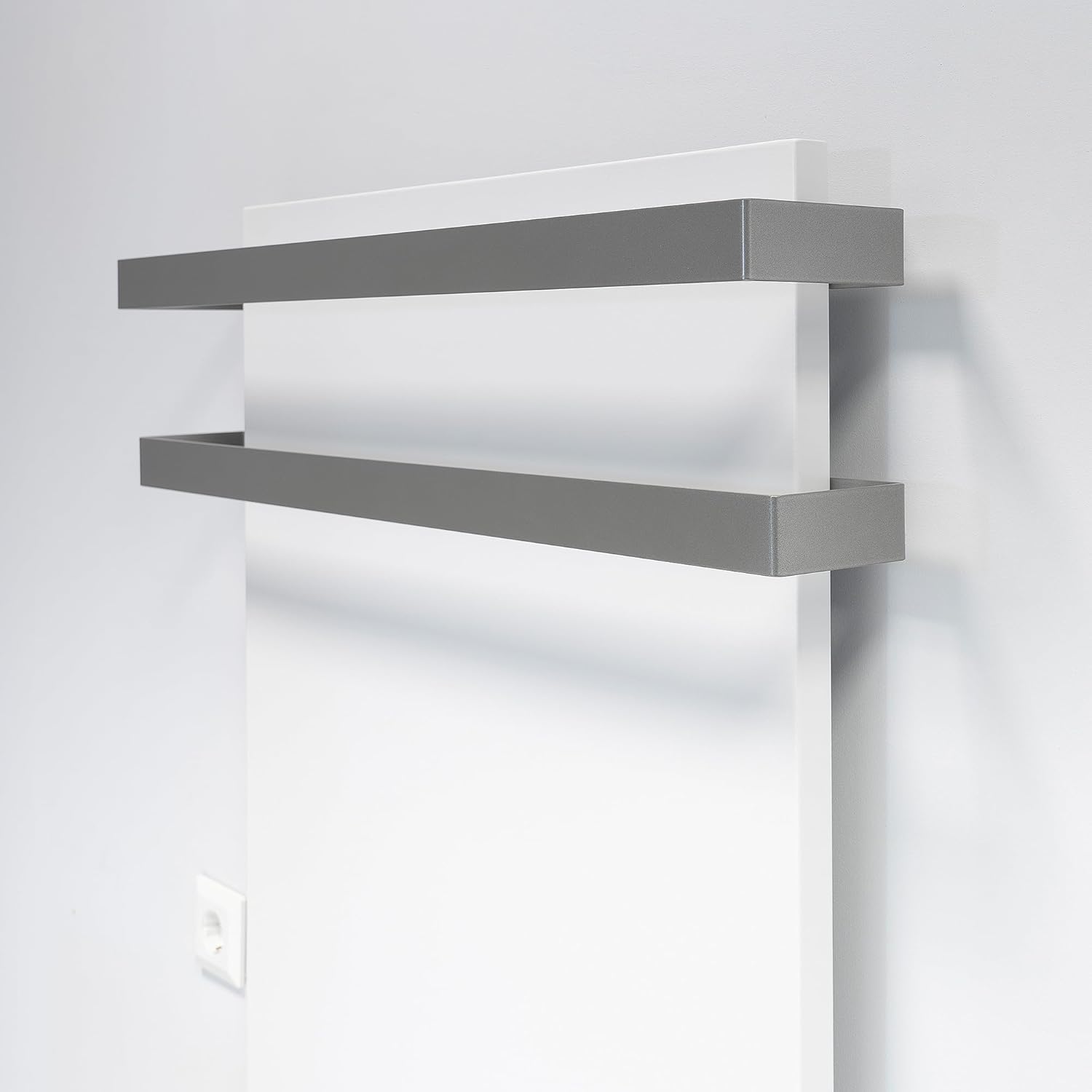 - MONOCHROME DESIGN-VIELFALT: Stilvolle Handtuchhalter für Infrarot Heizkörper der Produktserie Citara. In vier verschiedenen Farben erhältlich: Weiss (matt, RAL 9003), Silber (RAL 9006), Grau (RAL 9007) und Schwarz (matt, Grobstruktur, RAL 9005). Für