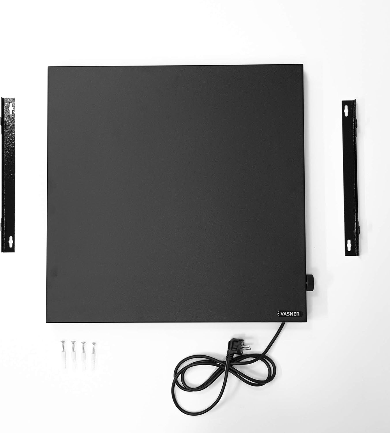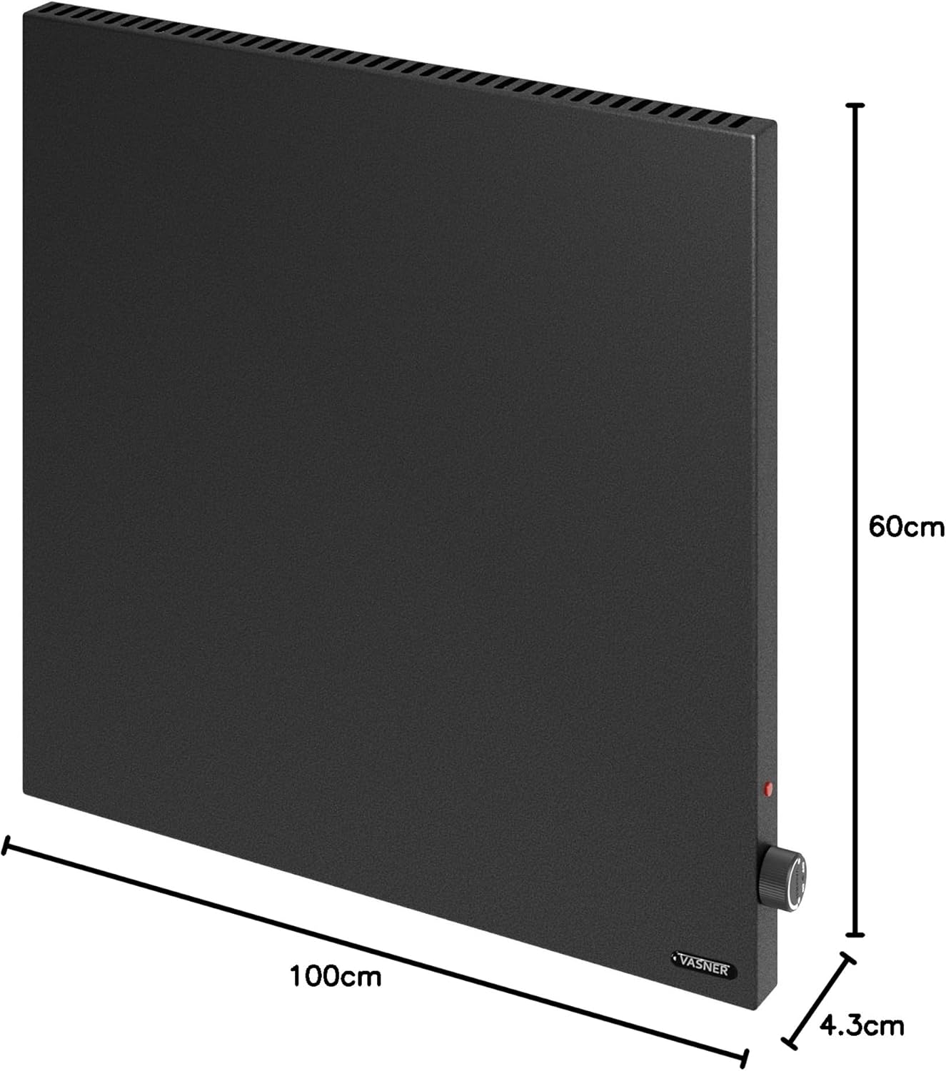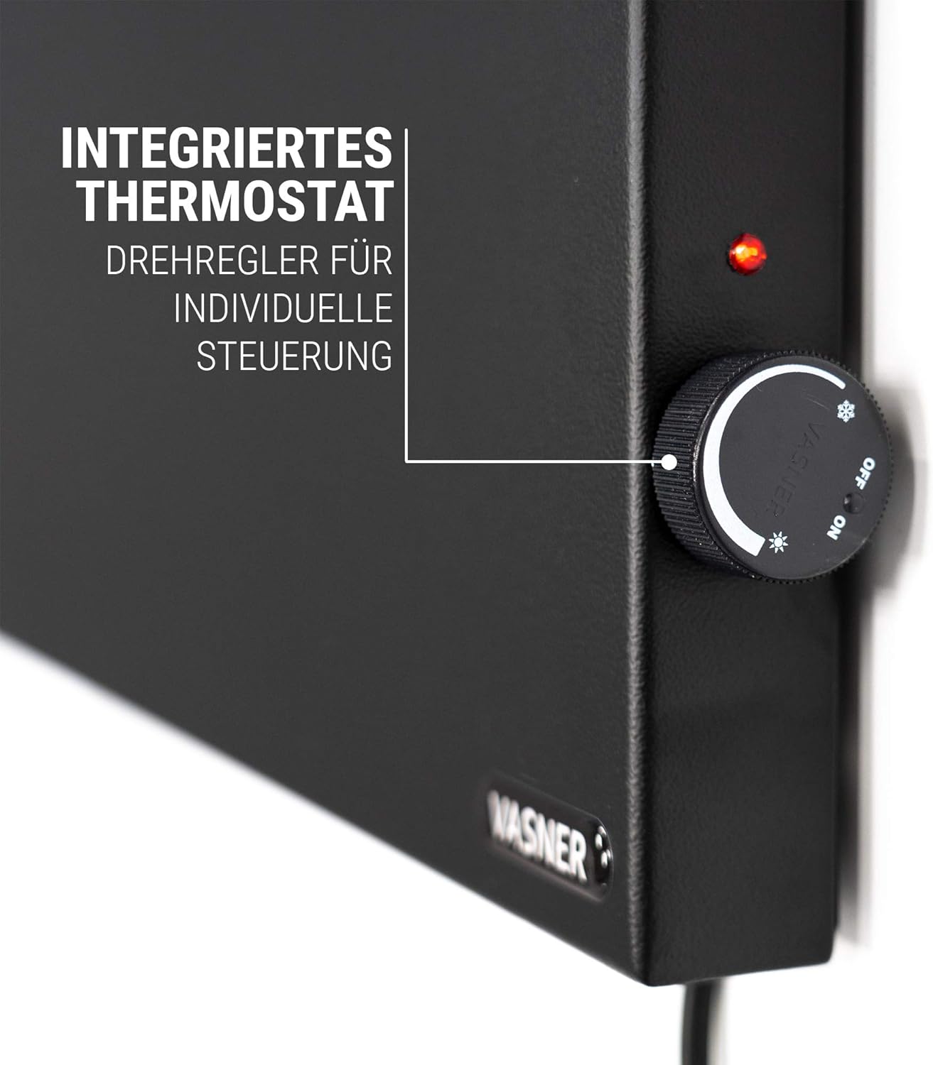 VASNER Konvi Schwarz - Hybrid Elektroheizung mit Thermostat, 600-1200 Watt, Infrarotheizung + Konvek