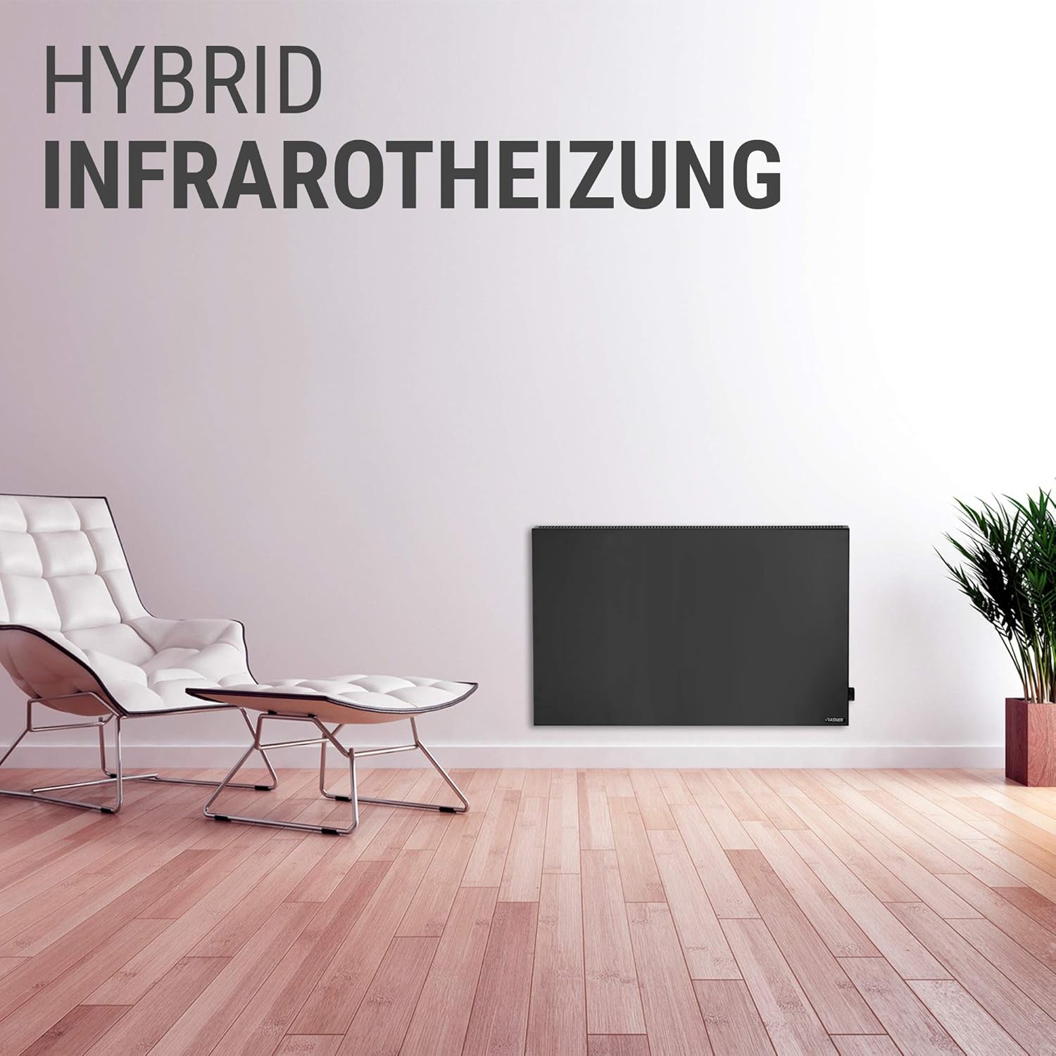 • HYBRIDHEIZUNG VORTEILE: Infrarotheizung + Konvektionsheizung, 600 Watt, 60 x 60 x 4 cm, Elektroheizung mit Thermostat, energiesparend, Wandmontage, stufenlos regelbar, 2 Jahre Garantie, bis 12 m²