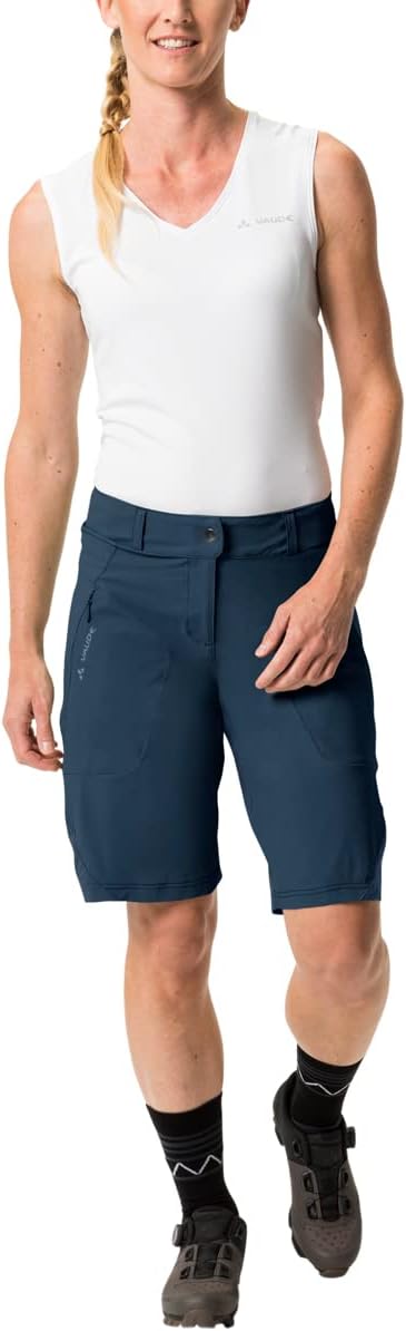 PRODUKTBESCHREIBUNGEN Die Women's Altissimo Shorts III sind auf flowigen Bike-Trails zu Hause. Die leger geschnittene MTB-Hose aus Stretchmaterial liebt kurvenreiche Touren. Zusätzlich bietet das angenehm leichte und nach dem bluesign®-Umweltstandard zertifizierte Hauptmaterial in Colorblock-Optik durch den hohen Elastan-Anteil volle Bewegungsfreiheit. Der höher geschnittene Bund mit Weitenregulierung sorgt zusätzlich für angenehmen Tragekomfort. Inklusive Innenhose mit Sitzpolster und Beinabschluss mit Antirutschband. Das VAUDE Green Shape-Label steht für ein umweltfreundliches, funktionelles Produkt aus nachhaltigen Materialien.
