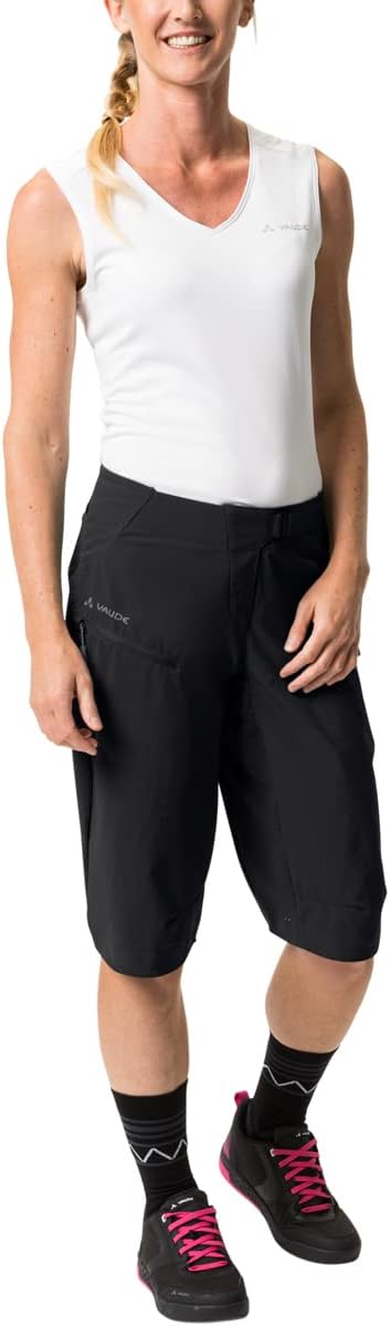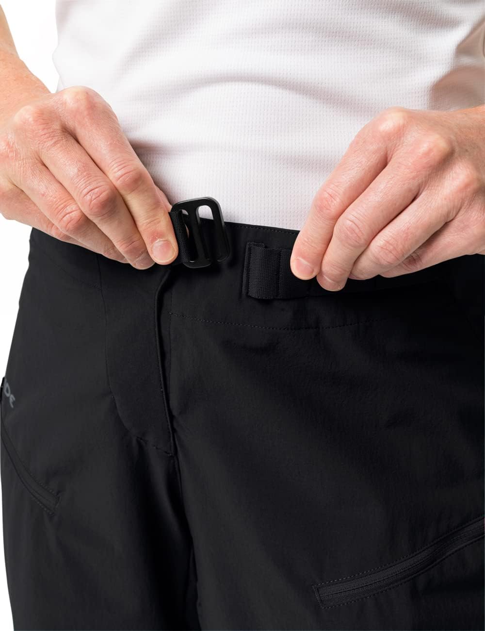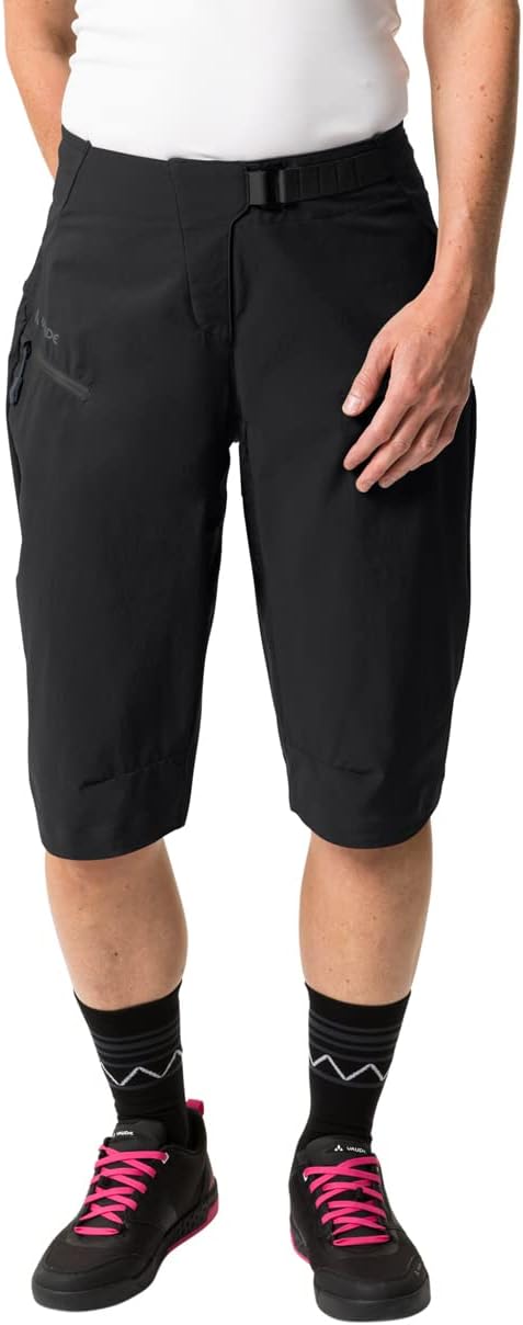 PRODUKTBESCHREIBUNGEN Mit den coolen Moab Pro Shorts steht einem actionreichen Tag im Bikepark oder auf dem Trail nichts im Wege. Die sehr bequemen MTB Enduro Shorts für Damen kommen mit einer innovativen und bei Bedarf einfach zu verstellenden 2in1-Bundlösung, die ganz ohne Reissverschluss auskommt, wodurch nichts drückt oder zwickt. Der Bund ist hinten höher geschnitten und elastisch, damit die MTB Enduro Shorts für Damen sitzen, wo sie hingehören. Der progressive Schnitt der vorgeformten Knie erlaubt das Fahren mit Protektoren, wobei Perforationen im Innenbeinbereich für beste Ventilation sorgen. 2 tiefer sitzende, mit Reissverschluss versehene Eingrifftaschen können auch während der Fahrt bedient und zusätzlich zur Belüftung genutzt werden. Für das hoch abriebfeste, dabei leichte und sehr elastische Material wird ein zertifiziertes Massenbilanzverfahren angewendet. Dabei wird aus Altreifen Pyrolyse-Öl gewonnen, das der herkömmlichen Polyamid-Herstellung zugeführt wird. Durch das chemische Recycling werden bis zu 60 % CO2 eingespart. Die Moab Pro Shorts für Damen sind mit Eco Finish PFC-frei wasser- und schmutzabweisend ausgerüstet. Zudem ist dieses Produkt klimaneutral: Die Emissionen aus Materialien, Herstellungsprozess und Versand wurden ganzheitlich ermittelt und systematisch reduziert. Aktuell nicht vermeidbare Emissionen wurden vollständig über die unabhängige Non-Profit-Organisation „myclimate“ kompensiert. Das VAUDE Green Shape-Label steht für ein umweltfreundliches, funktionelles Produkt aus nachhaltigen und bluesign® zertifizierten Materialien. Mehr
