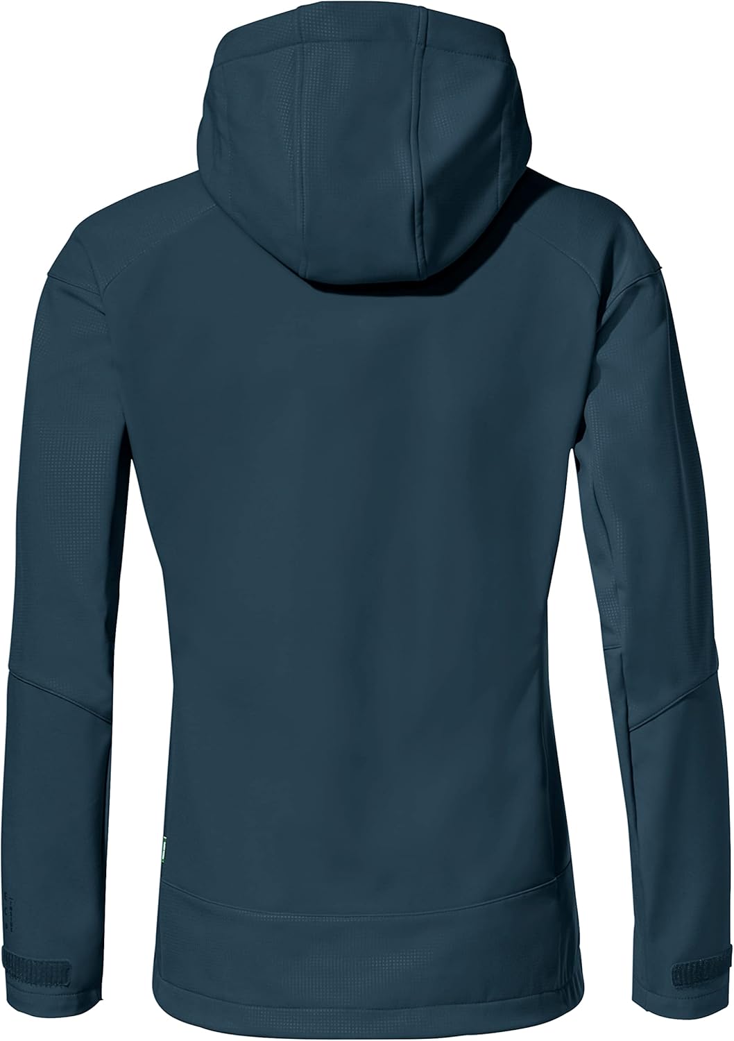 PRODUKTBESCHREIBUNGEN Für ambitionierte Wanderinnen: Wer gern schnell rund um Berg und Tal unterwegs ist, findet in dieser elastischen Softshelljacke mit partiell geprägter Aussenseite ein funktionelles und bewährtes Kleidungsstück für das ganze Jahr. Das Softshell-Material schützt dank Membran zu 100 % vor böigem Wind am Gipfel oder auch an kühleren Sommerabenden. Die Unterarmbelüftung geht von der Achsel bis zur Rückseite und sorgt dafür, dass das Körperklima auch bei anstrengenden Bergtouren reguliert werden kann. Der 2-Wege-Frontreissverschluss macht Hosentaschen jederzeit problemlos zugänglich. Die Kapuze passt sich optimal an den Kopf an und lässt sich bequem mit einer Hand verstellen. Die Ärmelabschlüsse können mit Klett reguliert werden. Mit dem hohen Stehkragen und der leicht angerauten Innenseite wird aus der Softshelljacke ein angenehm weiches Kleidungsstück für die Übergangszeit sowie im Sommer hoch oben im Gebirge. Die Softshelljacke ist zu 100 % aus recycelten Materialien hergestellt. Das VAUDE Green Shape-Label steht für ein umweltfreundliches, funktionelles Produkt aus nachhaltigen und bluesign® zertifizierten Materialien. Mehr