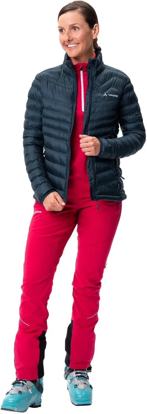 PRODUKTBESCHREIBUNGEN Unverzichtbarer Wärmespender auf jeglicher Art von Ski- und Bergtour – die sehr leichte und klein verpackbare Isolationsjacke Batura Isolationsjacke für Damen. Die neuartige Füllung dieser Jacke ist ein Quantensprung in der Isolationstechnologie: Das fluffige Füllmaterial hat die gleichen Eigenschaften wie Daune – leicht und hoch wärmespeichernd – ist jedoch vollständig aus recyceltem Material erstellt. Diese synthetische Daune hat den Vorteil, dass sie auch im nassen Zustand wärmt und relativ pflegeleicht ist! Diese isolierenden Flocken wurden wie auch bei Daune üblich in Kammern eingenäht, um beste Wärmeergebnisse zu erzielen. Die Jacke kann in der elastischen Netz-Innentasche klein verpackt werden und fällt somit im Rucksack beim Aufstieg nicht ins Gewicht. Der figurnahe Schnitt passt perfekt unter die Hardshell und schützt auch durch den weitenregulierbaren Bund zuverlässig vor Auskühlung. Diese wasserabweisende Winterjacke wurde aus vollständig recyceltem Material erstellt, ist nach dem höchsten Umweltstandard bluesign-zertifiziert und den ganzen Winter hindurch vielseitig einsetzbar. Das VAUDE Green Shape-Label steht für ein umweltfreundliches, funktionelles Produkt aus nachhaltigen Materialien. Mehr
