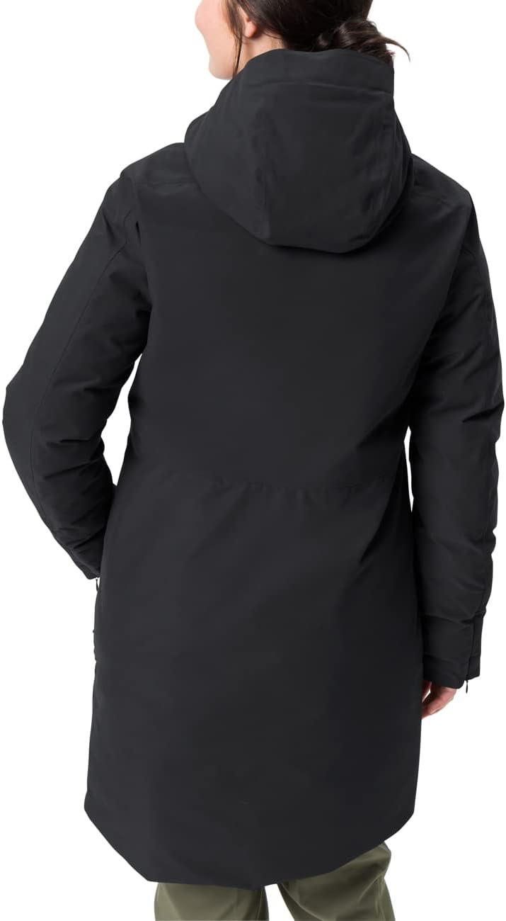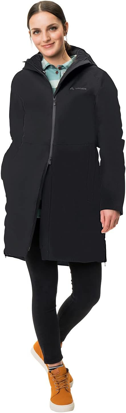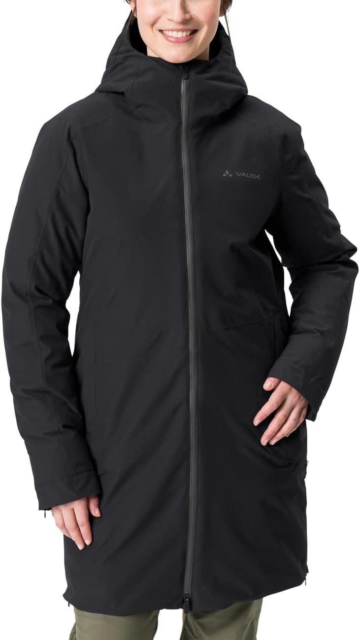 PRODUKTBESCHREIBUNGEN Arbeitsweg, Winterspaziergang oder Abendveranstaltung - der modische Wintermantel Women's Mineo Coat passt zu allem! Dieser moderne, urbane Mantel in seiner neuesten Ausführung trotzt Wind, Dauerregen und eisiger Kälte auf sehr umweltfreundliche Weise, denn er besteht durch und durch aus recycelten Materialien! Ein zuverlässig warmer, wasserdichter, winddichter und atmungsaktiver Alltagsbegleiter mit auffälligen Isolationskammern, die im oberen Teil nach innen und im unteren Teil nach aussen sichtbar werden. Das hoch funktionelle und leichte Isolationsmaterial darin ist sozusagen eine "vegane Daune": bauschig-leichte, elastische Faserbällchen aus 100 % recycelten PET Flaschen, die die warme Luft daunenähnlich einschliessen. Diese neuartige Isolationstechnologie ist leichter und wärmer als eine Wattierung und somit auch für eisige Tage geeignet. Dieses Wärmewunder schont das Federvieh und ist obendrein pflegeleichter als herkömmliche Daune. Desweiteren punktet der Mineo mit einem wasserdichten 2-Wege-Frontreissverschluss, reflektierenden Elementen an Brust und an den Ärmeln sowie zusätzlich aufzippbaren Seitenschlitzen. Er ist somit perfekt für Berufspendler, die bei jedem Winterwetter auch mal auf dem Rad unterwegs sein wollen oder müssen. Abgerundet wird dieser umweltfreundliche Damen Wintermantel durch eine Innentasche, zwei warme Eingrifftaschen mit Reissverschluss, verstellbare Ärmelbündchen und eine verstellbare, warme Kapuze. Das Material ist nach höchstem Umweltstandard bluesign-zertifiziert. Das VAUDE Green Shape-Label steht für ein umweltfreundliches, funktionelles Produkt aus nachhaltigen Materialien. Mehr