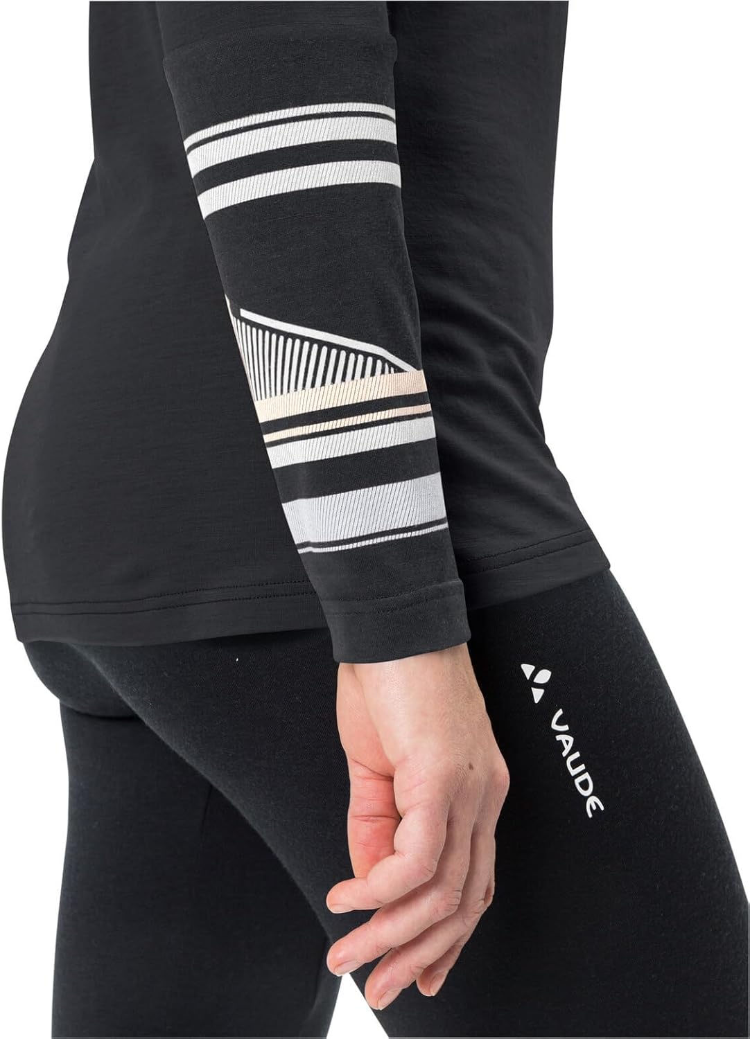PRODUKTBESCHREIBUNGEN Sitzt wie eine zweite Haut und sorgt für die Extraportion Wärme! Für dieses Langarmshirt für Damen mit berginspiriertem Printmuster verwenden wir zu 77 % feinste Wolle von Merino-Schafen. Die nach dem Responsible Wool Standard (RWS) zertifizierte Wolle spendet angenehme Wärme, nimmt Feuchtigkeit auf und reguliert den Klimahaushalt auf natürliche Weise. Sie ist ein nachhaltiger und nachwachsender Rohstoff und trägt sich angenehm auf der Haut. Damit die Funktionsunterwäsche noch schneller trocknet und länger hält, sind zusätzlich Polyesterfasern (23 %) in das Damen Langarmshirt eingearbeitet. Hergestellt in Europa. Als Mitglied mit Leader Status bei der unabhängigen Organisation Fair Wear engagiert sich VAUDE für faire Arbeitsbedingungen und faire Löhne. Zudem ist dieses Produkt klimaneutral: Die Emissionen aus Materialien, Herstellungsprozess und Versand wurden ganzheitlich ermittelt und systematisch reduziert. Aktuell nicht vermeidbare Emissionen wurden vollständig über die unabhängige Non-Profit-Organisation „myclimate“ kompensiert.