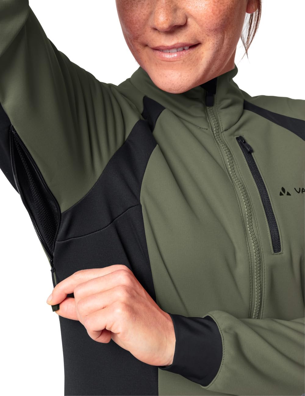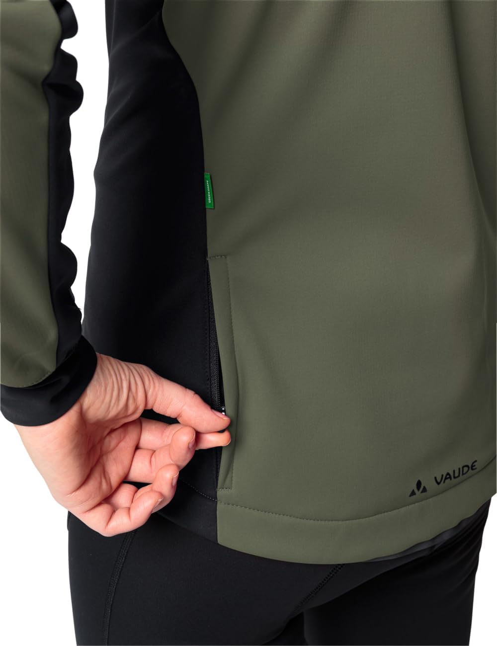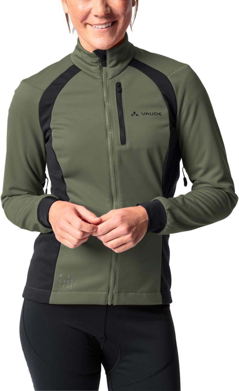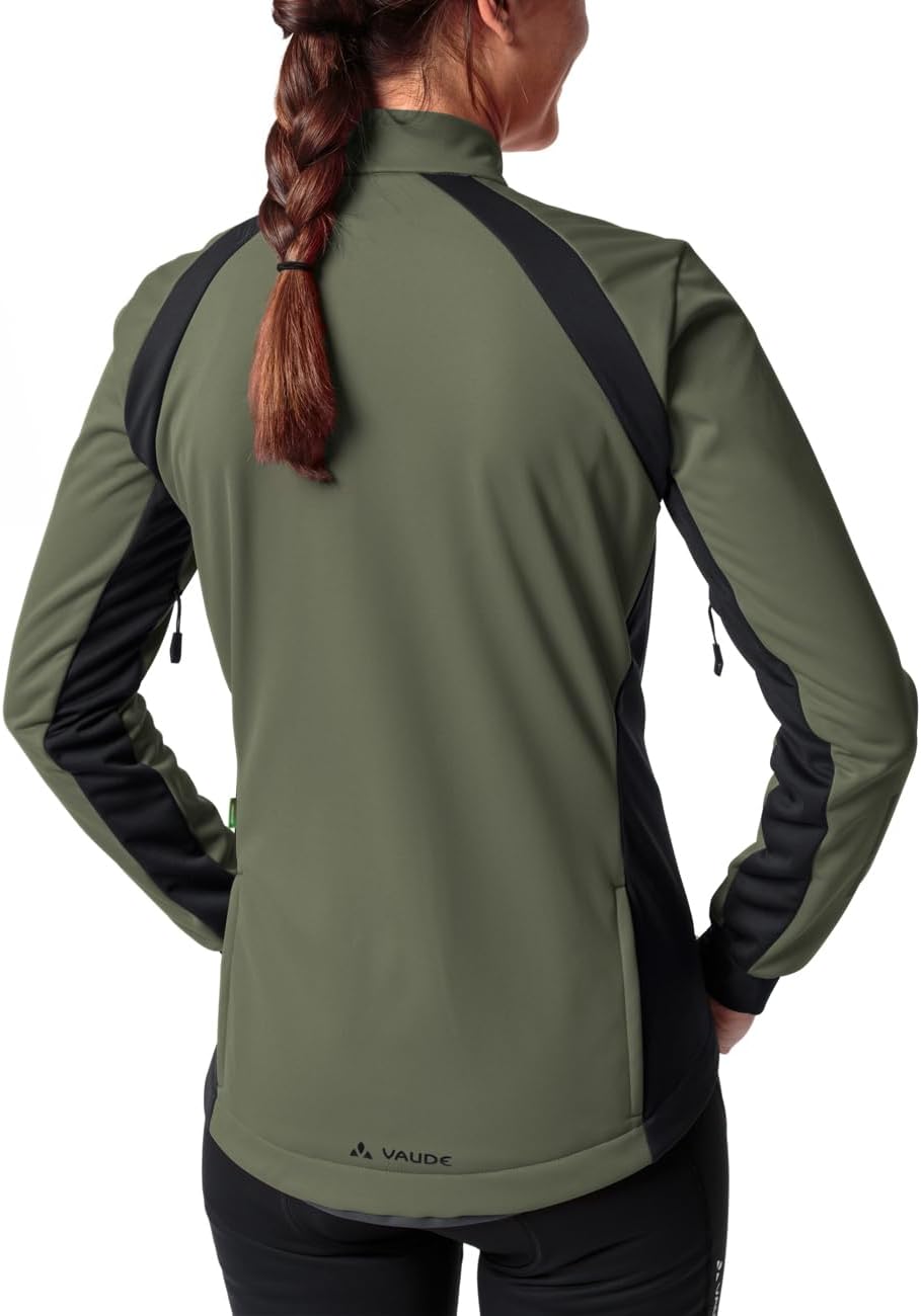 PRODUKTBESCHREIBUNGEN Der mehrfach preisgekrönte Bestseller nun auch endlich für Frauen! Die 3-Lagen Softshelljacke bietet besten Wetterschutz an kalten Tagen und ist für Fahrerinnen konzipiert, die auch bei widrigen Wetterbedingungen einige Stunden trainieren möchten oder eine längere Strecke zur Arbeit oder Uni pendeln. Der Schnitt der elastischen Softshell ist körpernah, jedoch nicht zu eng. Das winddichte Aussenmaterial wie auch das Innenfleece bestehen zu 100 % aus recyceltem Polyester. Nahtfeine, lange Unterarmreissverschlüsse gewährleisten eine gute Atmungsaktivität und Luftzirkulation. Vorgeformte Ärmel mit einem schön geschnittenen, enganliegenden Armabschluss, der innen mit weichem Fleece ausgeschlagene Kragen mit Kinnschutz sowie der silikonisierte Saum im Rücken sorgen für perfekten Sitz. Zur weiteren Ausstattung gehören eine obere Fronttasche mit Reissverschluss und 2 Reissverschlusstaschen auf dem Rücken. Die Posta Softshell Jacket lässt sich hervorragend mit den Posta Warm Tights kombinieren und ist nach dem höchsten Umweltstandard bluesign®-zertifiziert. Das VAUDE Green Shape-Label steht für ein umweltfreundliches, funktionelles Produkt aus nachhaltigen Materialien. Mehr