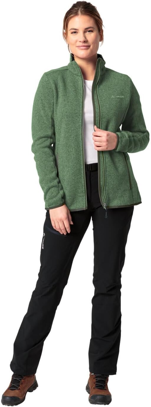 PRODUKTBESCHREIBUNGEN Vielseitig und dabei schick: Wenn die Temperaturen langsam wieder runtergehen, dann ist die Rienza Jacket IV für Damen die richtige Wahl. Die bequeme und wärmende Damen-Fleecejacke fühlt sich angenehm an und ist sehr strapazierfähig. Sie engt nicht ein und ist daher ein idealer Partner bei sportlichen Aktivitäten oder im Alltag. Die Fleecejacke für Damen eignet sich als wärmende Schicht unter Regen- oder Winterjacke, reicht bei einer Herbstwanderung aber auch allein aus. Das umweltfreundliche Fleecematerial hält auch bei schweisstreibenden Aktivitäten warm und trocken. Die klassische Strickoptik im Melange-Look macht die Fleecejacke für Damen zum Hingucker, was auch durch das feminine Design unterstrichen wird. Der kuschelige Stehkragen hält den Nackenbereich angenehm warm und trocken. Die beiden seitlichen Reissverschlusstaschen dienen als Handwärmer oder bieten Platz für Kleinigkeiten. Die Rienza Jacket IV wurde zu 100 % aus recyceltem Polyester hergestellt. Das VAUDE Green Shape-Label steht für ein umweltfreundliches, funktionelles Produkt aus nachhaltigen und bluesign® zertifizierten Materialien. Als Mitglied mit Leader Status bei der unabhängigen Organisation Fair Wear engagiert sich VAUDE für faire Arbeitsbedingungen und faire Löhne. Zudem ist dieses Produkt klimaneutral: Die Emissionen aus Materialien, Herstellungsprozess und Versand wurden ganzheitlich ermittelt und systematisch reduziert. Aktuell nicht vermeidbare Emissionen wurden vollständig über die unabhängige Non-Profit-Organisation „myclimate“ kompensiert. Mehr