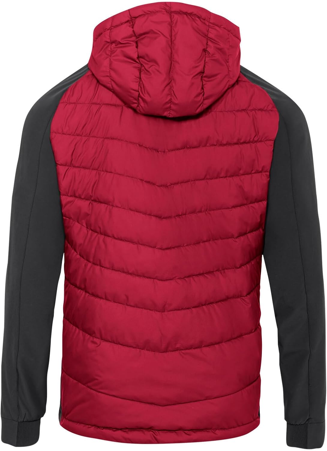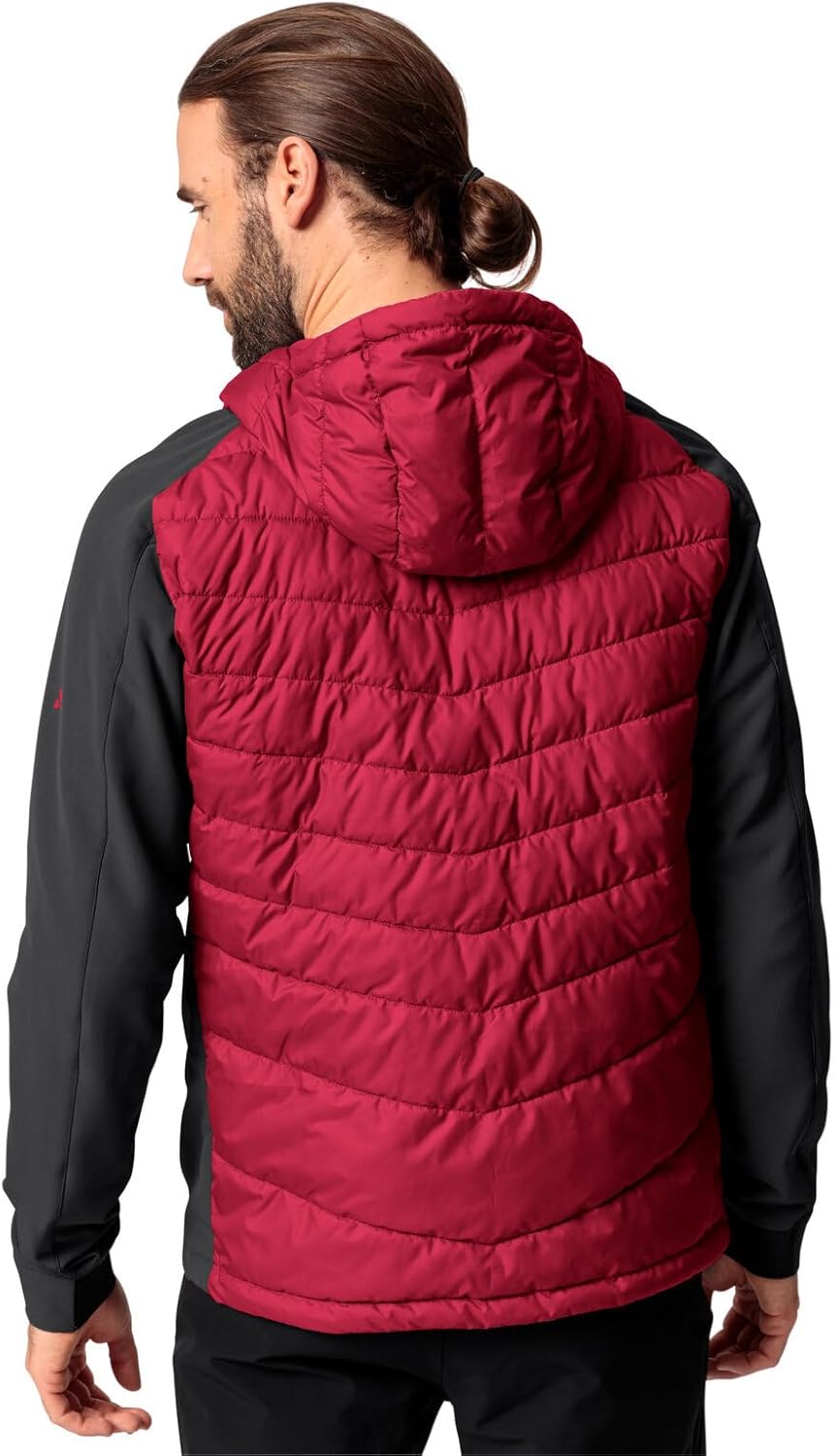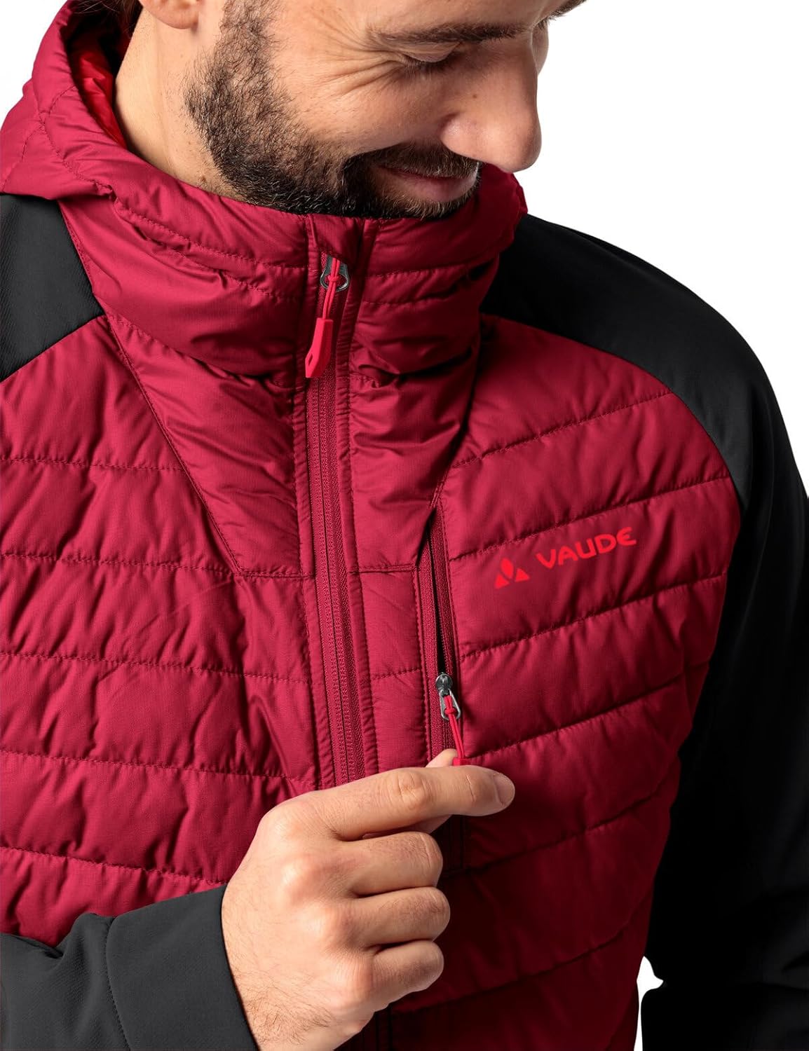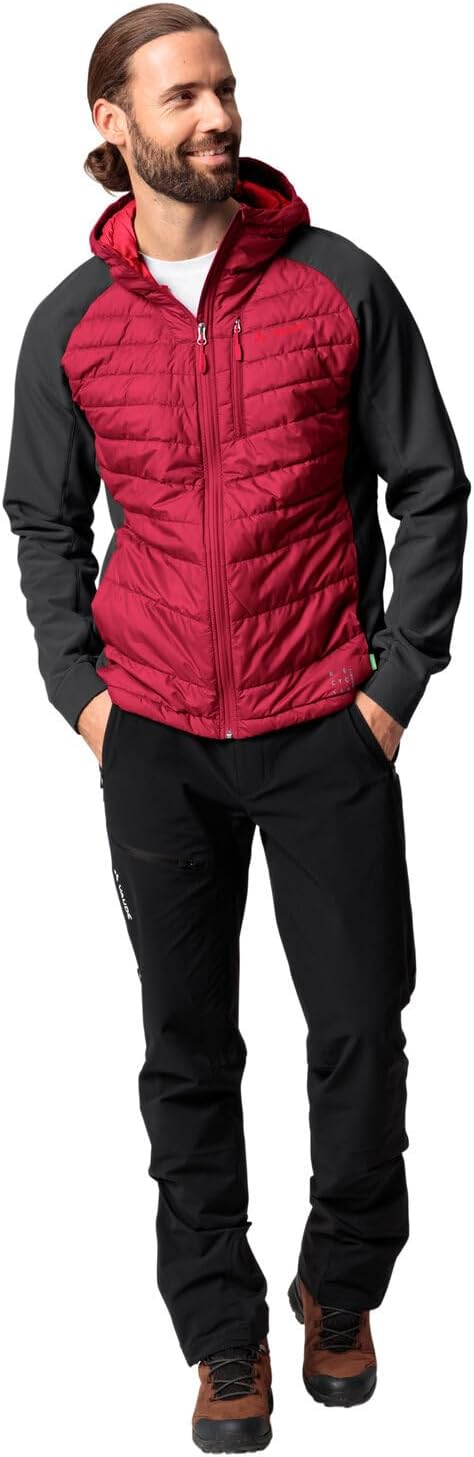 PRODUKTBESCHREIBUNGEN Prima Klima - die umweltfreundliche, sportive Hybrid Herrenjacke Elope bietet mit ihrem Materialmix aus elastischem, dampfdurchlässigen Stormfleece an den Ärmeln und der warmen, daunenähnlien Synthetikfüllung am Rumpf die ideale Kombination aus Wärmeschutz und Atmungsaktivität. Das komfortable, funktionelle Hybridmaterial sorgt nicht nur für ein ausgeglichenes Körperklima auf anspruchsvollen Winterwanderungen, es sieht zudem auch noch richtig gut aus. Die Herren Kapuzenjacke hat zwei Reissverschluss-Eingrifftaschen, eine Reissverschlusstasche an der Brust, elastische Ärmelbündchen und eine praktische Kapuzenverstellung. Die Men's Elope Hybrid Jacke wurde klimafreundlich aus recyceltem Material hergestellt. Ein toller Midlayer, der in der Übergangszeit solo oder im Winter unter einer Hardshell getragen kann. Das VAUDE Green Shape-Label steht für ein umweltfreundliches, funktionelles Produkt aus nachhaltigen, bluesign® zertifizierten Materialien.