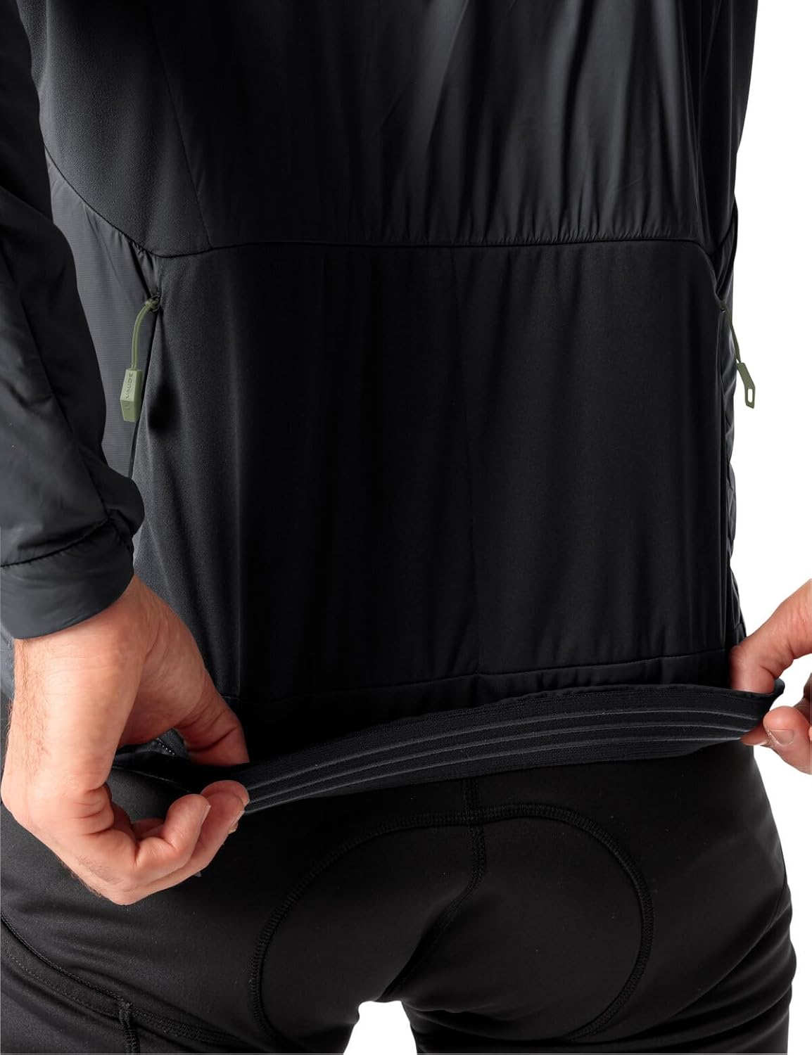 PRODUKTBESCHREIBUNGEN Der Profi für ambitionierte Graveltourer: Die hoch funktionelle Men’s Kuro Insulation Fahrradjacke ist eine wärmende, wasser- und schmutzabweisende Herren Isolationsjacke der Spitzenklasse - sie bietet auf anspruchsvollen Graveltouren perfekten Schutz vor Wind, Dreck und frostigen Temperaturen. Der gerade Schnitt mit länger geschnittenem Rücken, die Primaloft® Eco Black Isolation im Vorderbereich und die elastischen, eng abschliessenden Armbündchen halten die Kälte zuverlässig ab. Atmungsaktive, elastische Einsätze sorgen für ein ausgeglichenes Körperklima und perfekte Bewegungsfreiheit auf dem Gravelbike. Praktische, leicht bedienbare Reissverschlusstaschen an der Vorderseite und am Rücken bieten ausreichend gesicherten Stauraum für Handy, Riegel, Schlüssel und andere Utensilien auf holprigen Strassen. Die weich aufgeraute Innenseite sorgt für ein angenehmes Tragegefühl, silikonisierte Elastikeinsätze am Saum und dekorative Reflexelemente komplettieren die Jacke, die sich durch kompromisslose Funktion und Style auszeichnet. Dank Eco Finish ist die Jacke zudem umweltfreundlich wasserabweisend ausgerüstet. Diese leistungsstarke Radjacke besteht aus überwiegend recycelten Materialien und ist klimaneutral: Die Emissionen aus Materialien, Herstellungsprozess und Versand wurden ganzheitlich ermittelt und systematisch reduziert. Aktuell nicht vermeidbare Emissionen wurden vollständig über die unabhängige Non-Profit-Organisation „myclimate“ kompensiert. Als Mitglied mit Leader Status bei der unabhängigen Organisation Fair Wear engagiert sich VAUDE für faire Arbeitsbedingungen und faire Löhne. Das VAUDE Green Shape-Label steht für ein umweltfreundliches, funktionelles Produkt aus nachhaltigen Materialien.