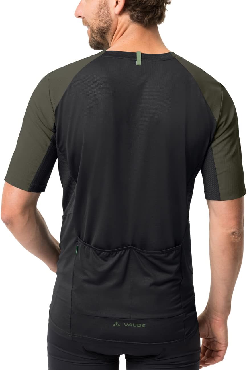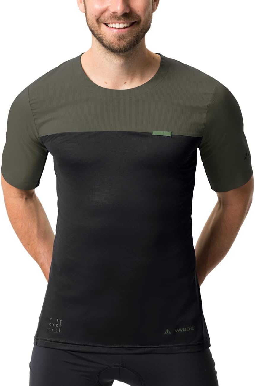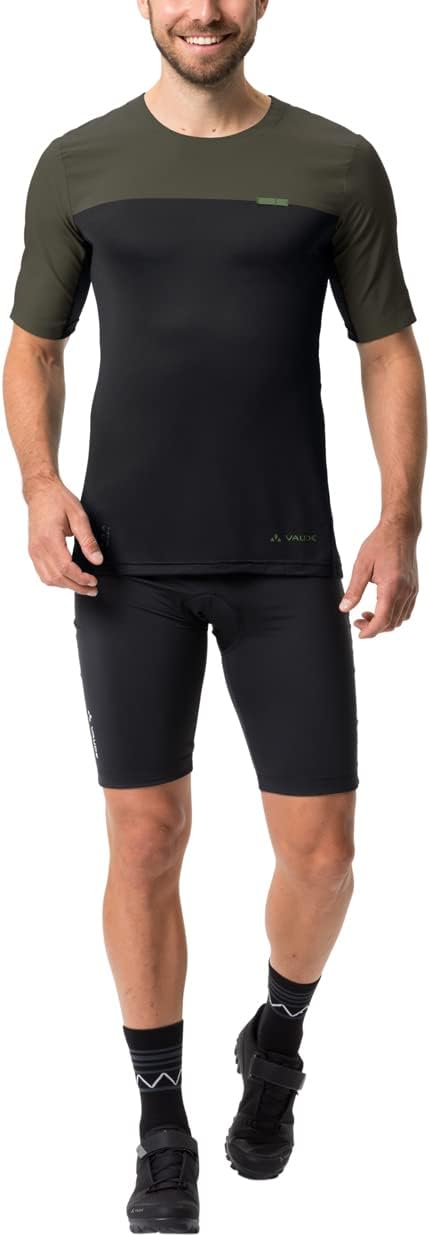 PRODUKTBESCHREIBUNGEN Dieses T-Shirt für Gravelfahrer ist sowohl stylish als auch multifunktional. Das Kuro II Shirt für Herren kommt im engeren Slim Fit mit Rundhalsausschnitt und lässt sich mit seiner Hybridkonstruktion aus 3 verschiedenen, überwiegend recycelten Materialien äusserst komfortabel tragen: Im Schulterbereich setzen wir sehr leichtes und gleichzeitig robustes Material mit leichter Perforierung ein. Front und Rücken aus elastischem Strickmaterial liegen leicht und angenehm auf der Haut und seitlich unter den Armen sorgt ein elastisches Waben-Mesh für beste Belüftung und uneingeschränkte Bewegungsfreiheit. 2 offene Taschen im Rücken. Schön ins Design des Herren T-Shirts integriert, finden sich dekorative Elemente im Nacken und ein Webband auf der linken Brust zum Einstecken einer Sonnenbrille. Das Kuro II aus überwiegend recycelten Materialien ist ein leichtes, atmungsaktives und schnelltrocknendes Multifunktions-Shirt für den legeren Graveler. Das VAUDE Green Shape-Label steht für ein umweltfreundliches, funktionelles Produkt aus nachhaltigen und bluesign® zertifizierten Materialien. Als Mitglied mit Leader Status bei der unabhängigen Organisation Fair Wear engagiert sich VAUDE für faire Arbeitsbedingungen und faire Löhne. Zudem ist dieses Produkt klimaneutral: Die Emissionen aus Materialien, Herstellungsprozess und Versand wurden ganzheitlich ermittelt und systematisch reduziert. Aktuell nicht vermeidbare Emissionen wurden vollständig über die unabhängige Non-Profit-Organisation „myclimate“ kompensiert.