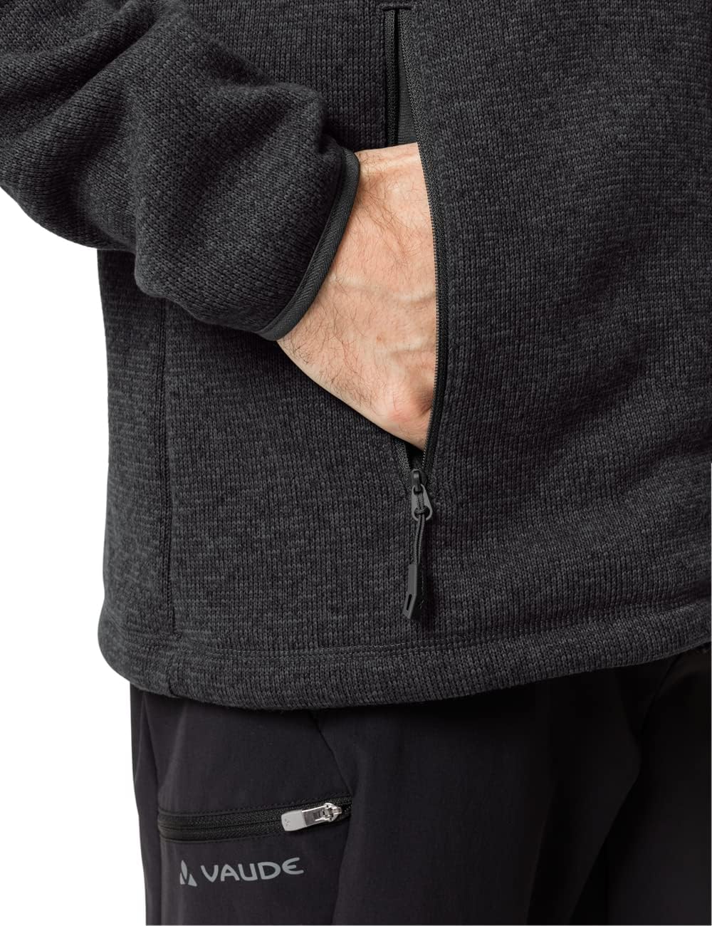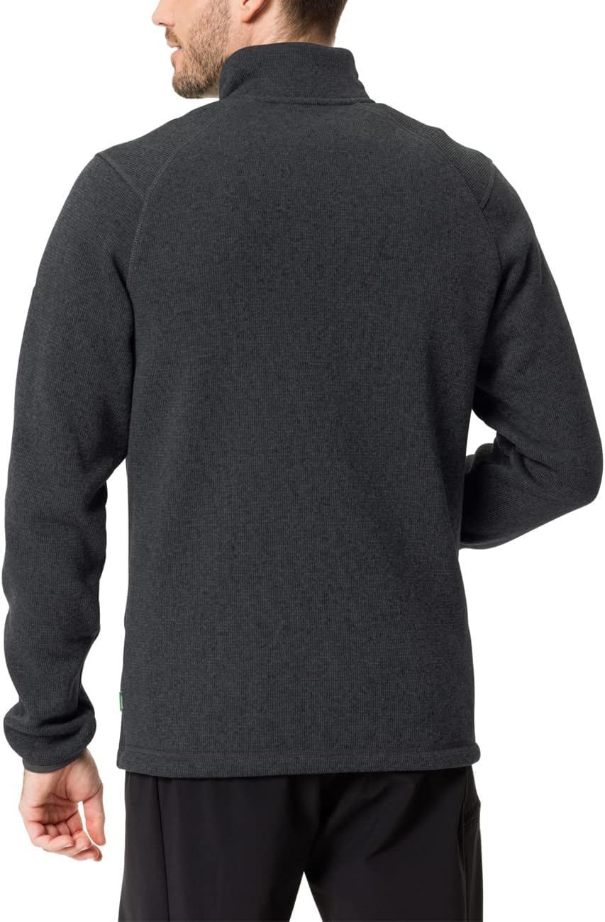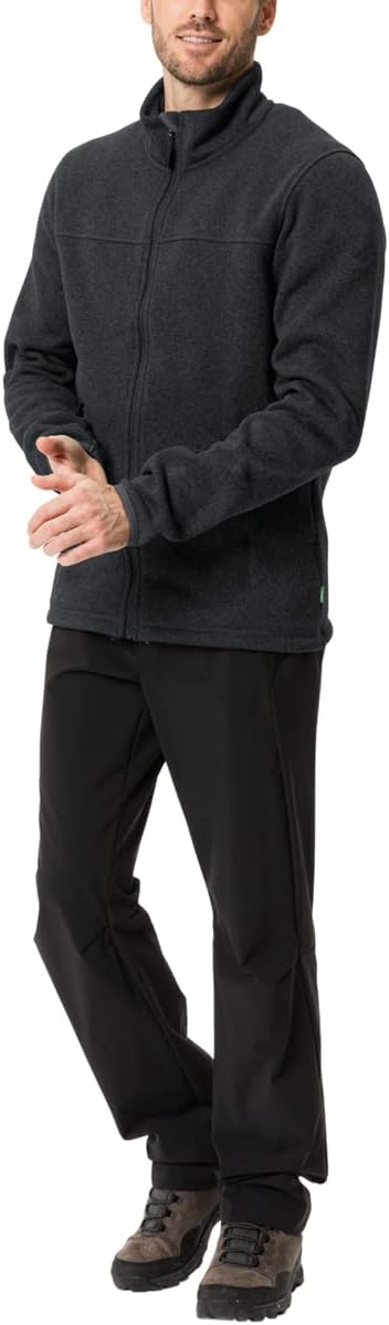 PRODUKTBESCHREIBUNGEN Diese Fleecejacke für Herren in modischer Strickoptik ist der ideale Begleiter, wenn die Temperaturen wieder in den Keller gehen. Das umweltfreundliche Fleece-Material, das zu 100 % aus recycelten PET-Flaschen hergestellt wurde, hält auch bei schweisstreibenden Aktivitäten warm und trocken. Dabei fühlt sich das Fleece angenehm an und ist sehr strapazierfähig. Die Fleecejacke für Herren engt nicht ein und kann als wärmende Schicht unter der Regen- oder Winterjacke getragen werden, reicht bei einer Wanderung im Herbst aber auch allein aus. Die flachen Nähte im Schulterbereich der Rienza Jacket III sorgen für einen hohen Tragekomfort, auch wenn ein Rucksack auf den Schultern sitzt. In den beiden seitlichen Reissverschlusstaschen der Herren Fleecejacke werden kalte Hände wieder warm, bieten aber auch Platz für Kleinigkeiten. Der Kordelzug im Saum ist durch die Taschen regulierbar, elastische Ärmelbündchen sorgen für optimalen Sitz. Das VAUDE Green Shape-Label steht für ein umweltfreundliches, funktionelles Produkt aus nachhaltigen und bluesign® zertifizierten Materialien. Als Mitglied mit Leader Status bei der unabhängigen Organisation Fair Wear engagiert sich VAUDE für faire Arbeitsbedingungen und faire Löhne. Zudem ist dieses Produkt klimaneutral: Die Emissionen aus Materialien, Herstellungsprozess und Versand wurden ganzheitlich ermittelt und systematisch reduziert. Aktuell nicht vermeidbare Emissionen wurden vollständig über die unabhängige Non-Profit-Organisation „myclimate“ kompensiert.