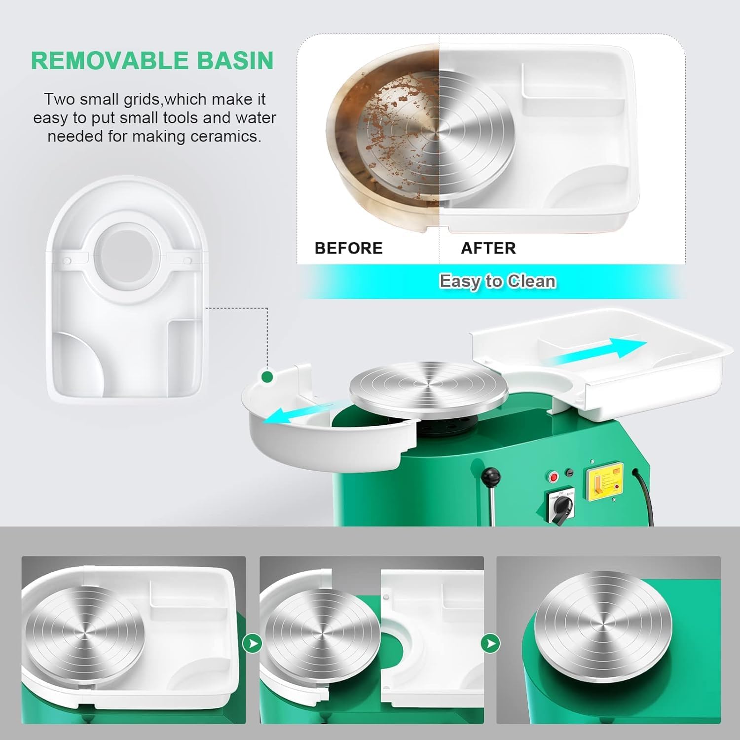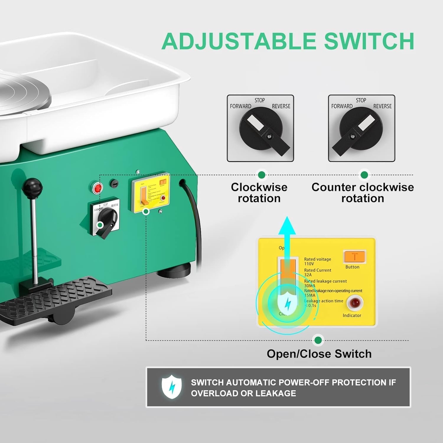 - 【Zwei-Richtungs-Rad】Ein benutzerfreundliches Interface ermöglicht sowohl eine Rechts- als auch eine Linksdrehung. Perfekt für Anfänger und ein tiefer Tauchgang für erfahrene Töpferenthusiasten.