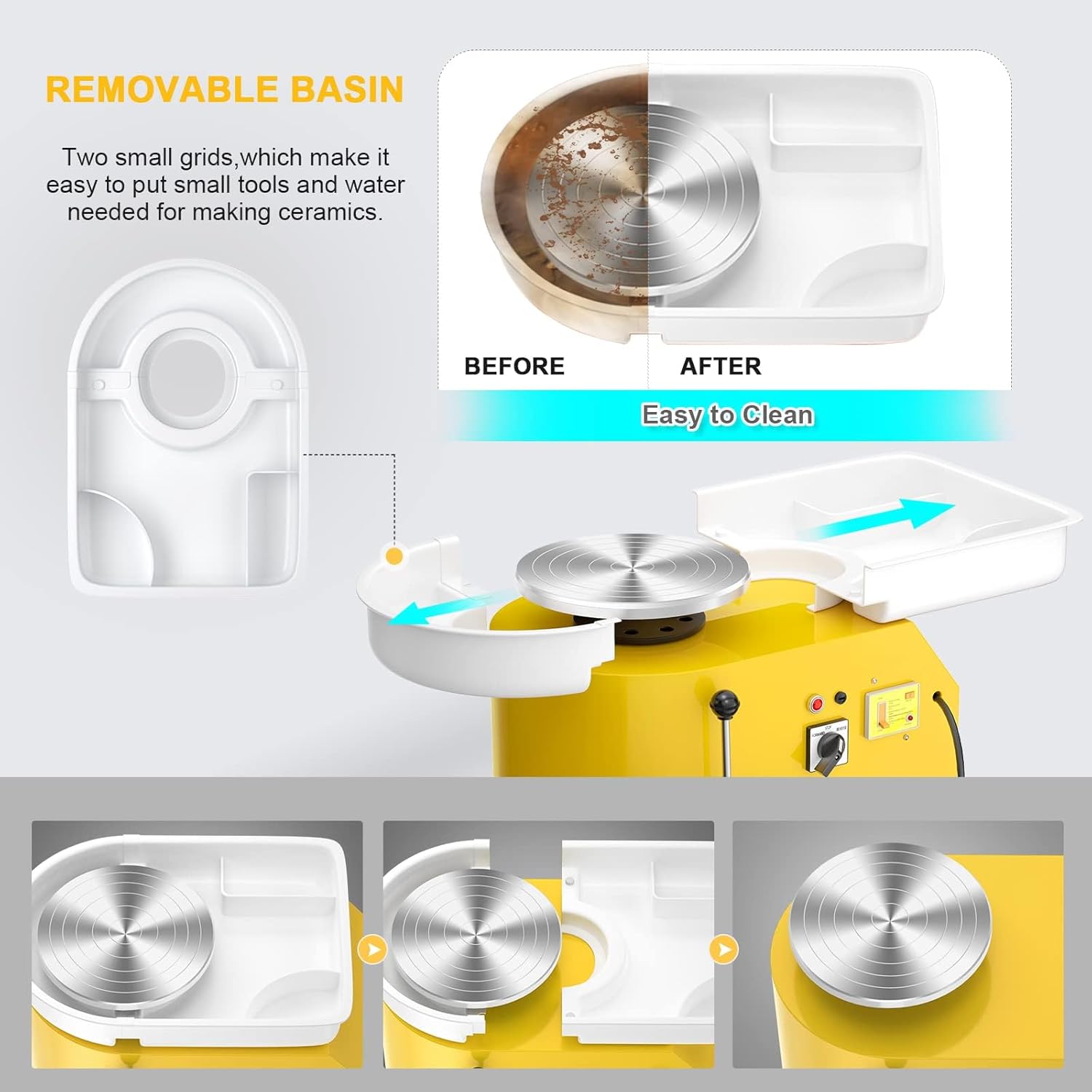 - 【Zwei-Richtungs-Rad】Ein benutzerfreundliches Interface ermöglicht sowohl eine Rechts- als auch eine Linksdrehung. Perfekt für Anfänger und ein tiefer Tauchgang für erfahrene Töpferenthusiasten.