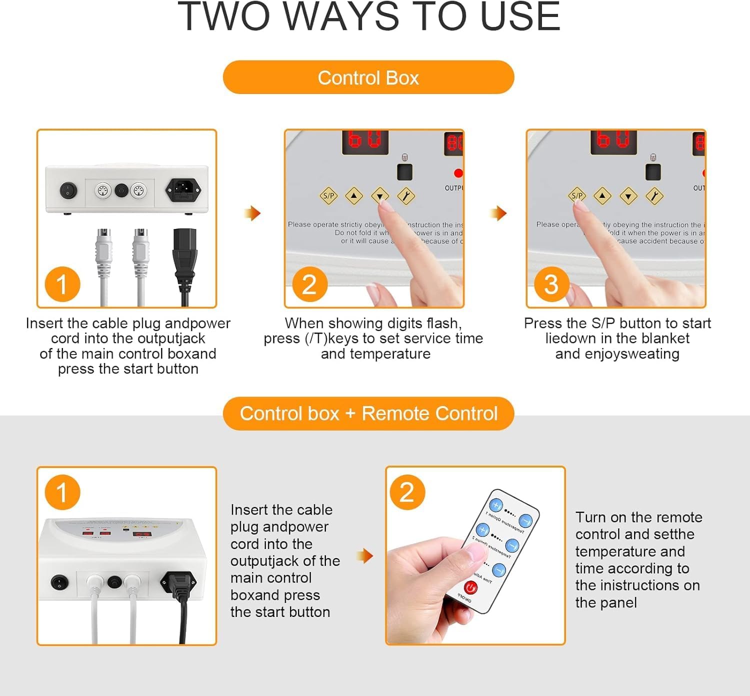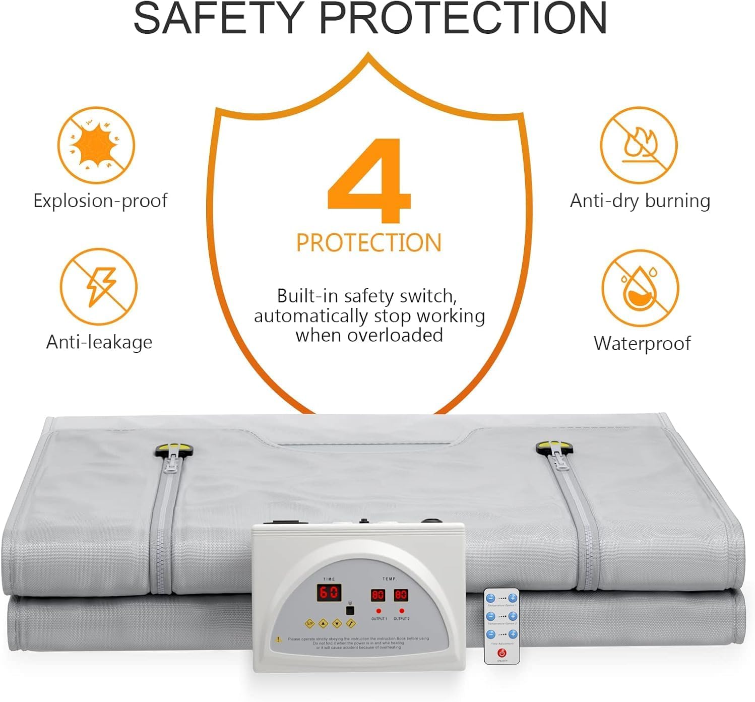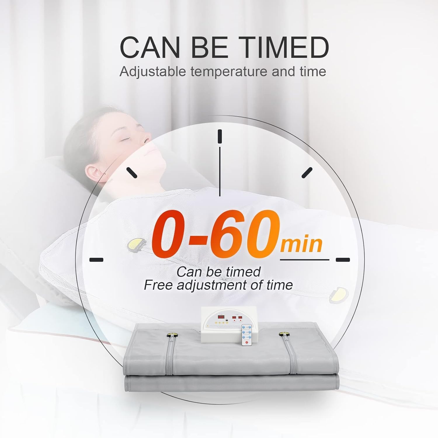 - đăHochwertige Materialienă Die Decke besteht aus umweltfreundlichem und strapazierfĂ€higem Oxford-Stoff, wasserdicht und wĂ€rmeisolierend ohne besonderen Geruch. Der Draht wurde dicker, was höheren Strömen standhalten kann und bei Verwendung sicherer ist. Hochwertiger intelligenter Temperaturregelchip bietet ein hochwertiges Saunaerlebnis. Nicht nur fĂŒr den Heimgebrauch geeignet, sondern auch fĂŒr professionelle Schönheitssalons.