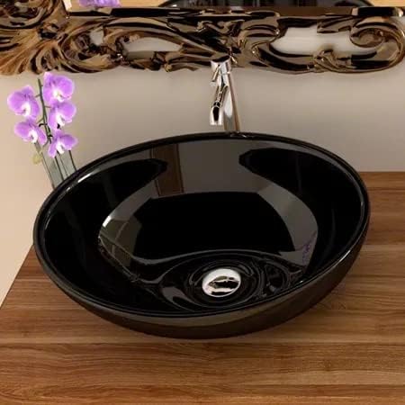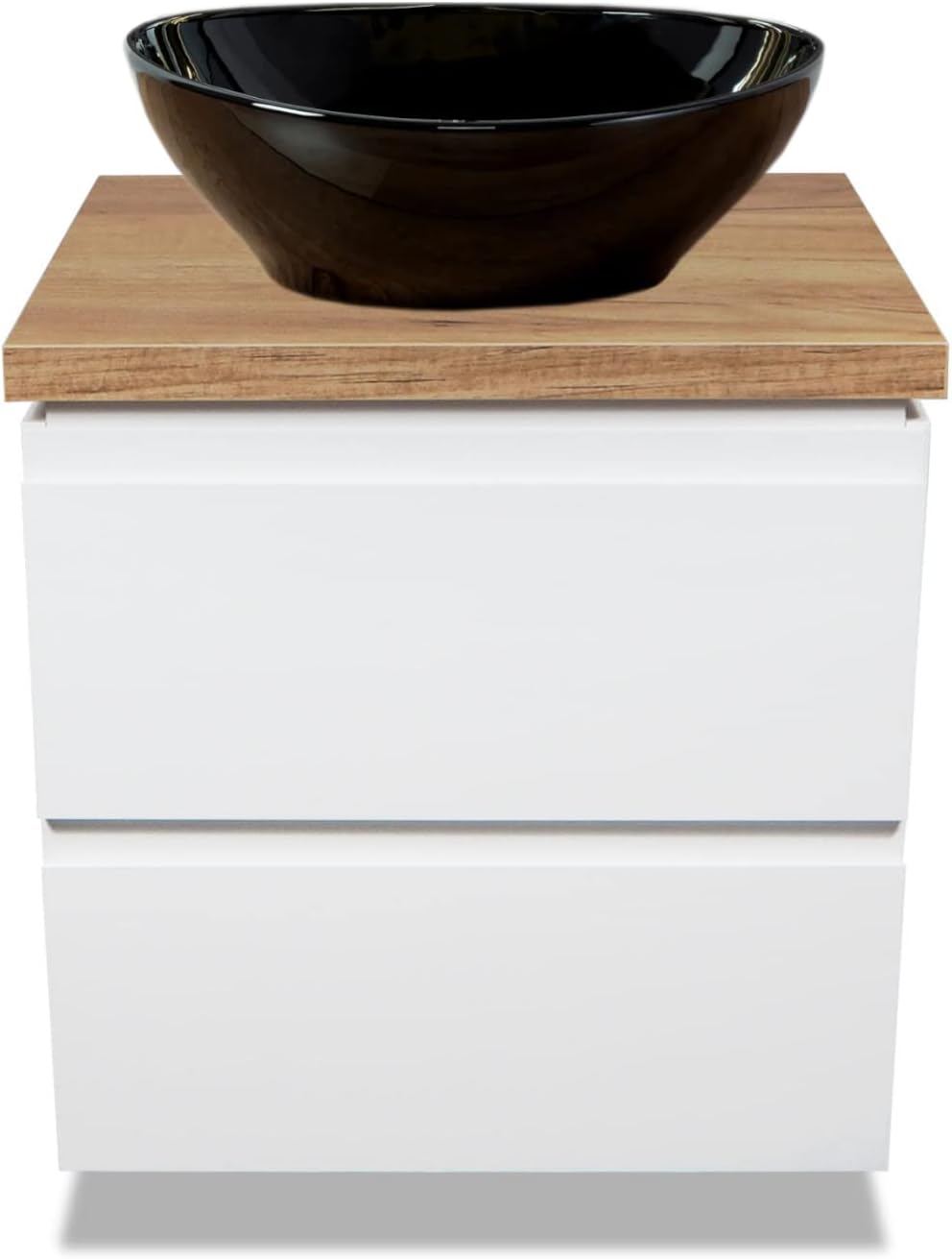 VBChome Badmöbel 50 cm Weiss Aufsatzwaschbecken Schwarz 41x35 cm Aufsatzwaschtisch mit Waschbeckenun