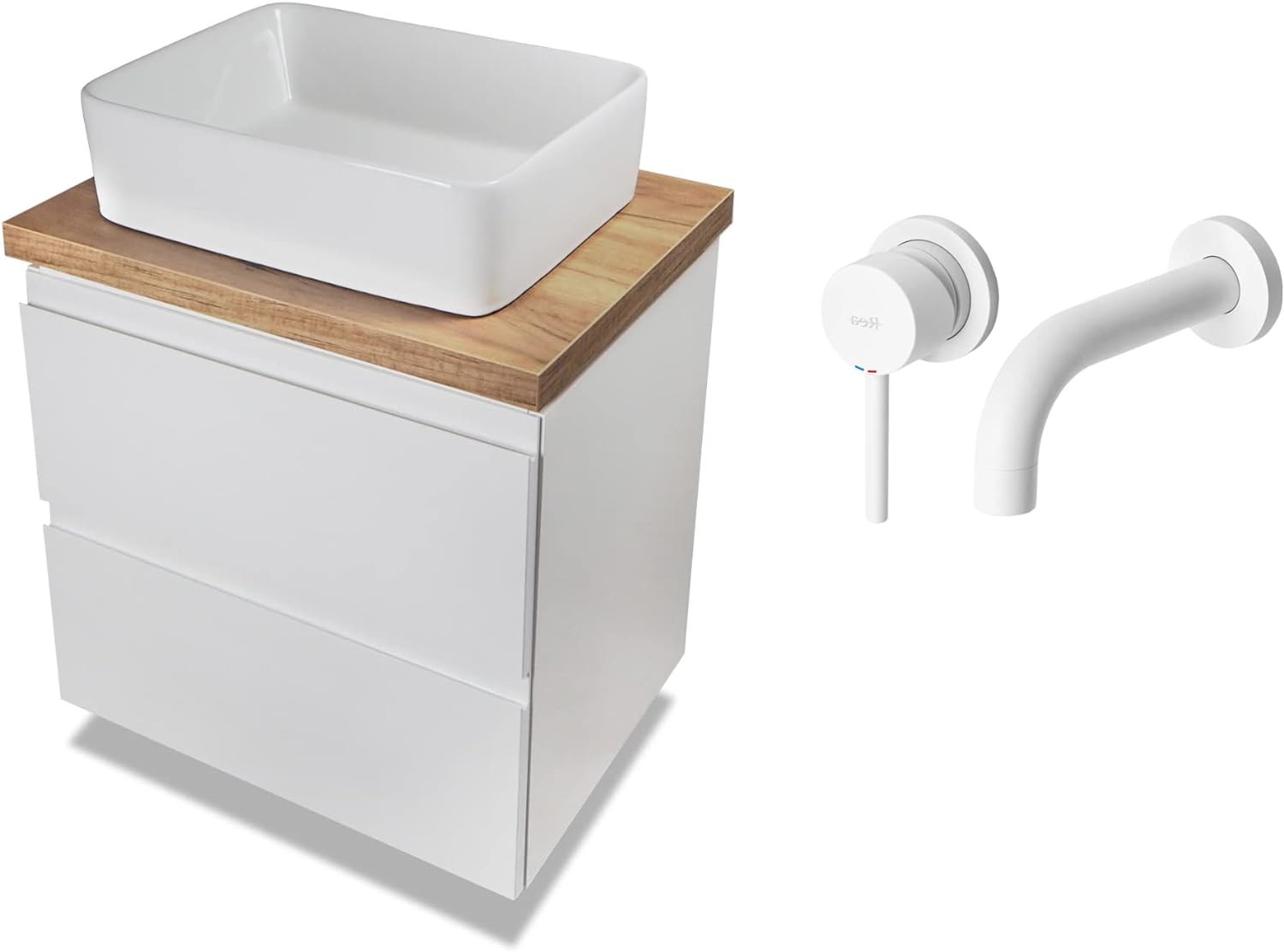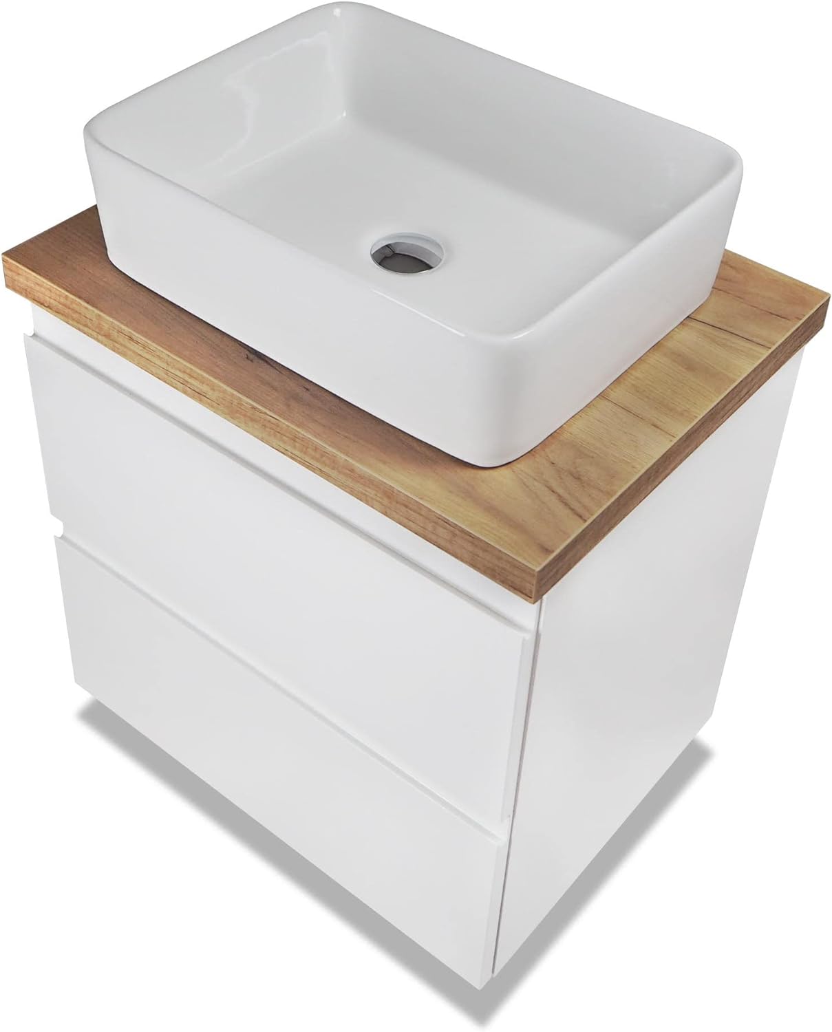 VBChome Badmöbel 60 cm Weiss Aufsatzwaschbecken mit Armatur 48x37 cm Aufsatzwaschtisch mit Waschbeck