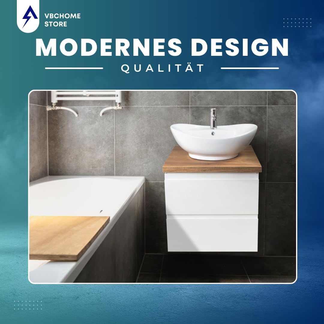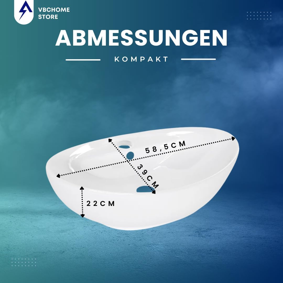 VBChome Badmöbel 60 cm Weiss Aufsatzwaschbecken mit Hahnloch 59x39 cm Aufsatzwaschtisch mit Waschbec