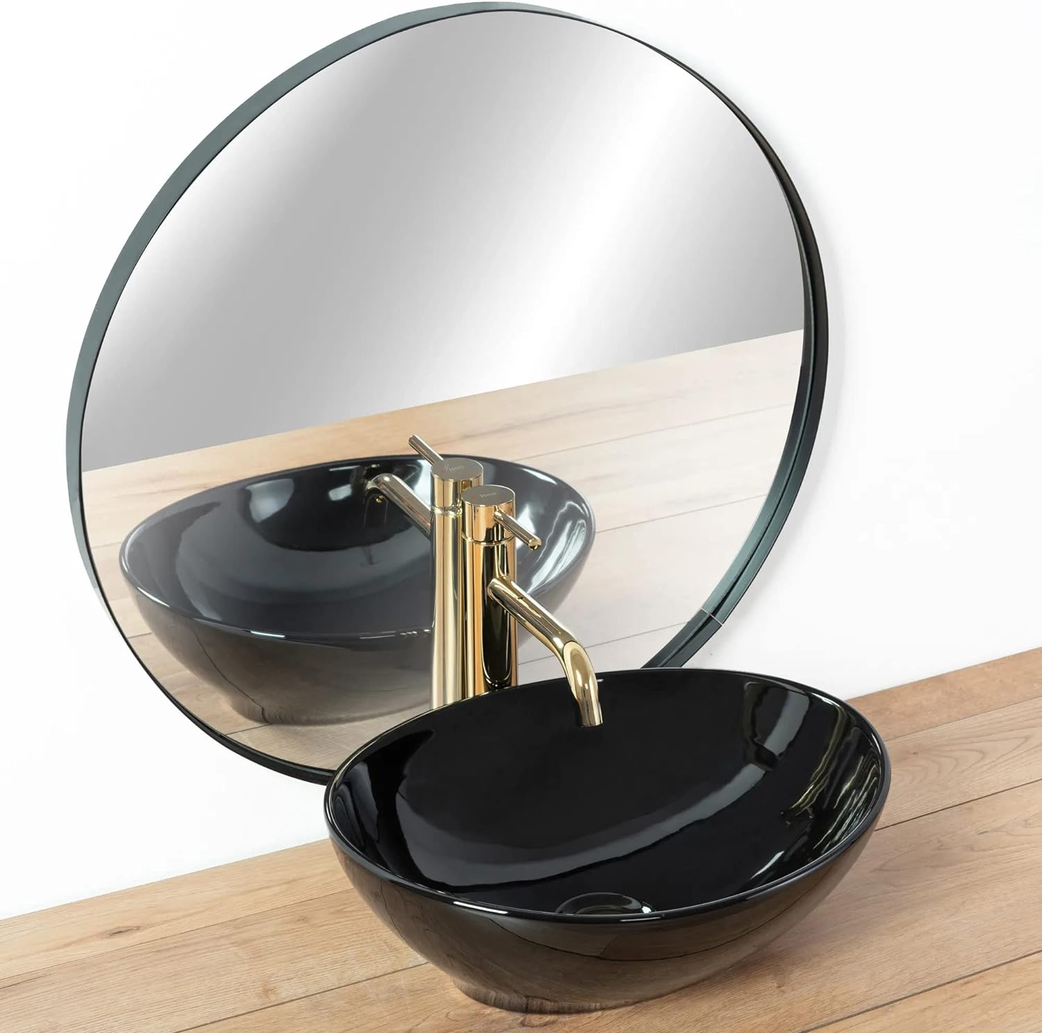 VBChome Badmöbel 60 cm Weiss Aufsatzwaschbecken Schwarz 41x35 cm Aufsatzwaschtisch mit Waschbeckenun