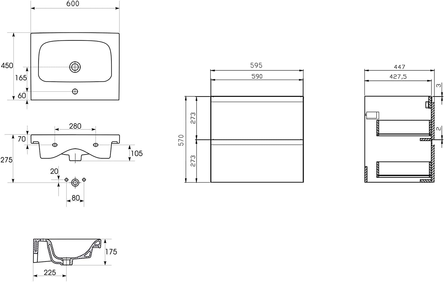 Variante: 60 cm Weiss mit Armatur und Pop-up Ventil