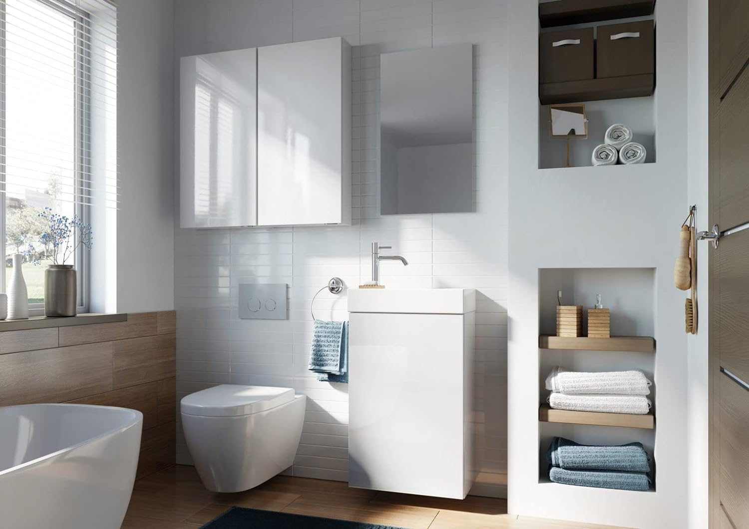 - Da das Waschbecken aus keramischem Material und der Schrank aus einer feuchtigkeitsbeständigen Platte besteht, ist das Set sowohl gegen mechanische als auch gegen übermässige Feuchtigkeitseinwirkung sehr widerstandsfähig. Dadurch wird Ihr Badezimmer