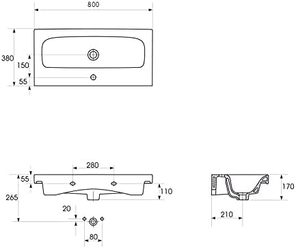 Variante: Grau mit Armatur und Pop-up Ventil 80 cm