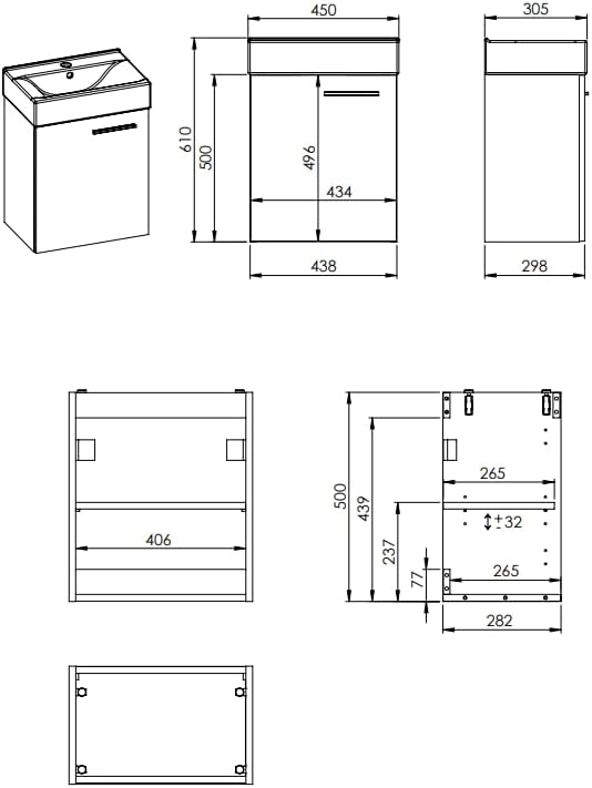 - Das Set besteht aus: Rechteckiger Waschtisch mit Hängeschrank und Armatur Schwarz. Türen mit Soft-Close-Mechanismus. 1 verstellbarer Tellerboden. Chromgriff. Möbel aus einer feuchtigkeitsbeständigen Platte.