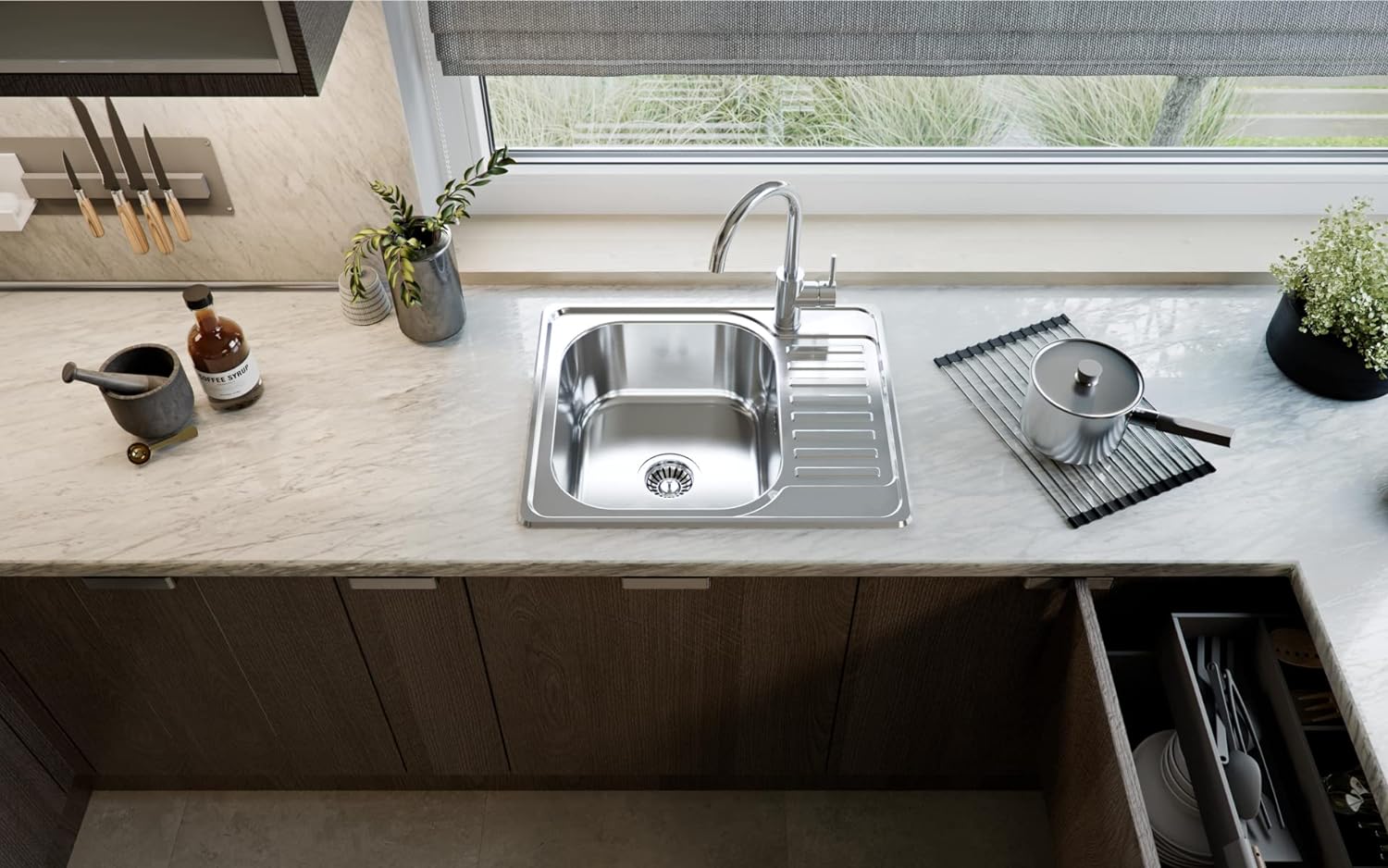 - ✅ Alle Oberflächen, egal ob rostfreier Stahl, Sicherheitsglas oder mineralische Spülbecken, sind antibakteriell konzipiert und sind einfach zu reinigen. Es gibt keine unzugänglichen Ecken, wo sich Schmutzreste sammeln können. Sie enthalten keine