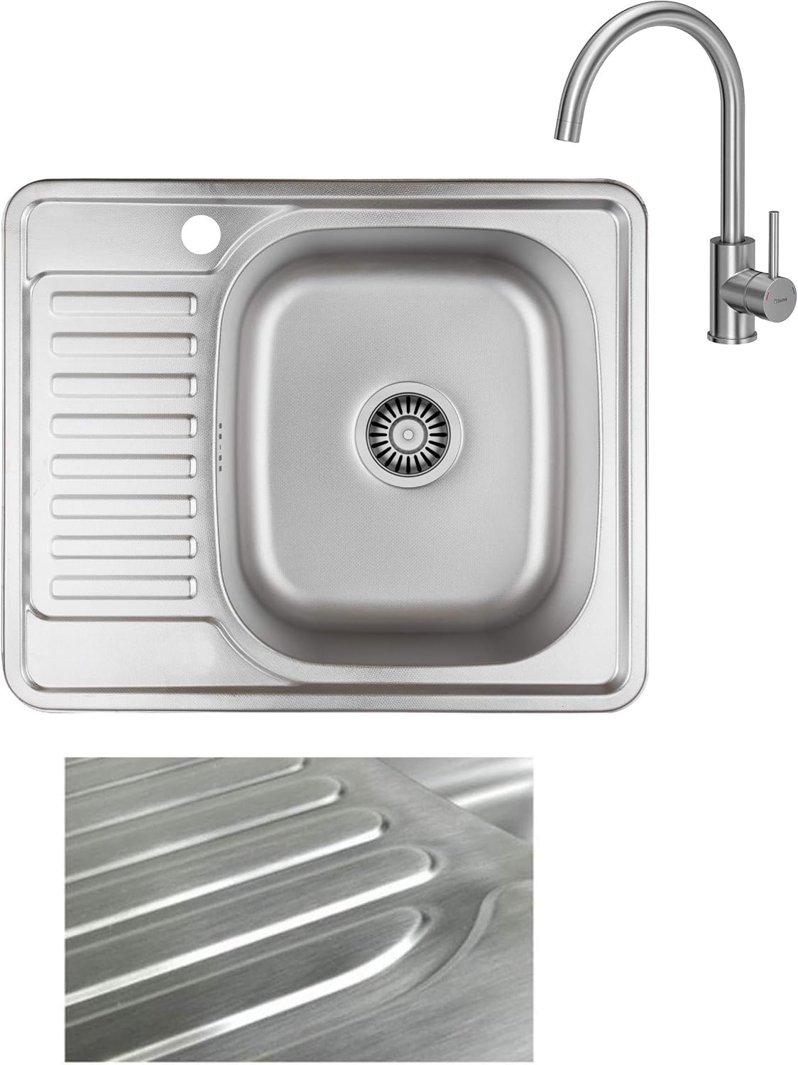 VBChome Einbauspüle mit Armatur 58x48 Satinstruktur ab 45er Unterschrank Edelstahl Küchenspüle Spüle