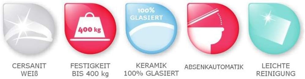 - ✅ Der sanft schliessende und perfekt aufeinander abgestimmte WC-Sitz mit pflegeleichte Oberfläche erleichtert Ihnen die Reinigung - für perfekte Sauberkeit. Auch das spülrandlose Stand-WC ermöglicht eine schnelle und einfache Reinigung und zeichnet