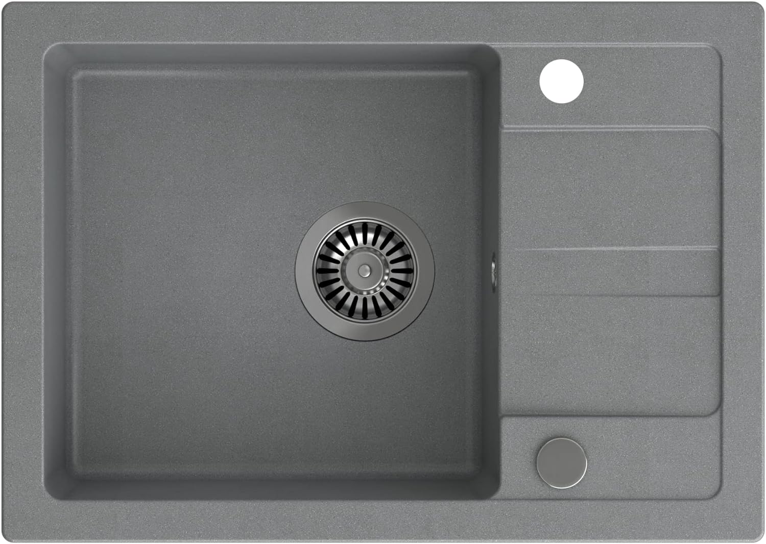 VBChome Spülbecken Grau 62 x 44 cm Granit Einzelbecken Einbauspüle Abtroffläche Gesprenkelt Reversib