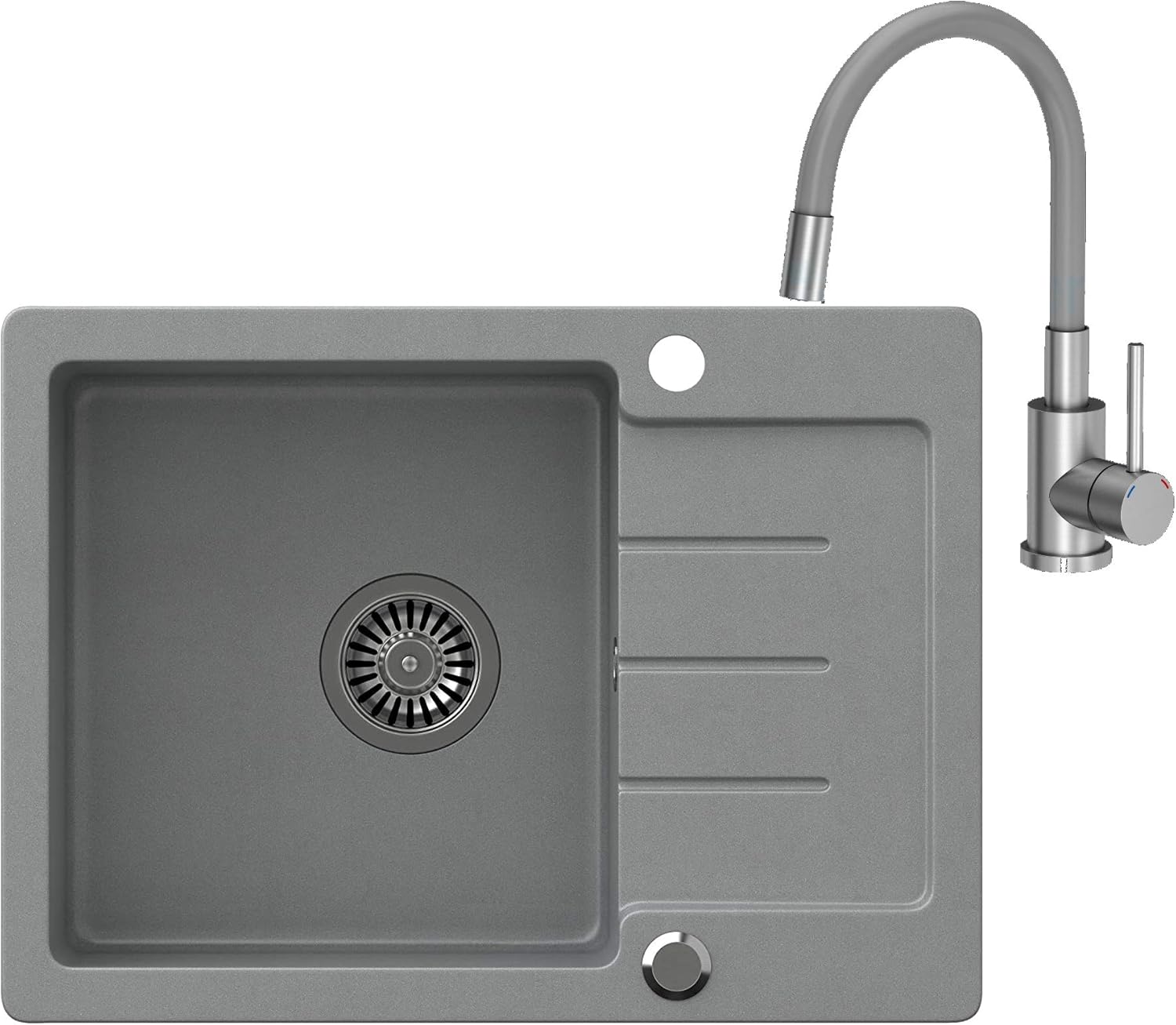 - Moderne massive Granitspüle aus 80% Granitzuschlagstoff 20% Harz. Extrem hartes, kratzfestes und durchgefärbtes Material - Oberfläche lässt sich leicht durch eine glatte, versiegelte Oberfläche reinigen.