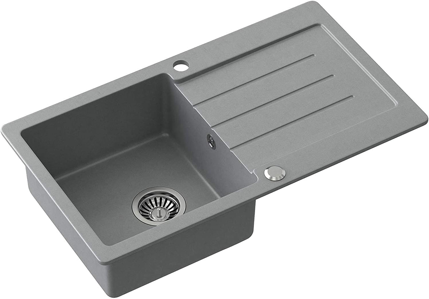 • ⚠ Moderne massive Granitspüle aus 80% Granitzuschlagstoff 20% Harz. Extrem hartes, kratzfestes und durchgefärbtes Material - Oberfläche lässt sich leicht durch eine glatte, versiegelte Oberfläche reinigen.